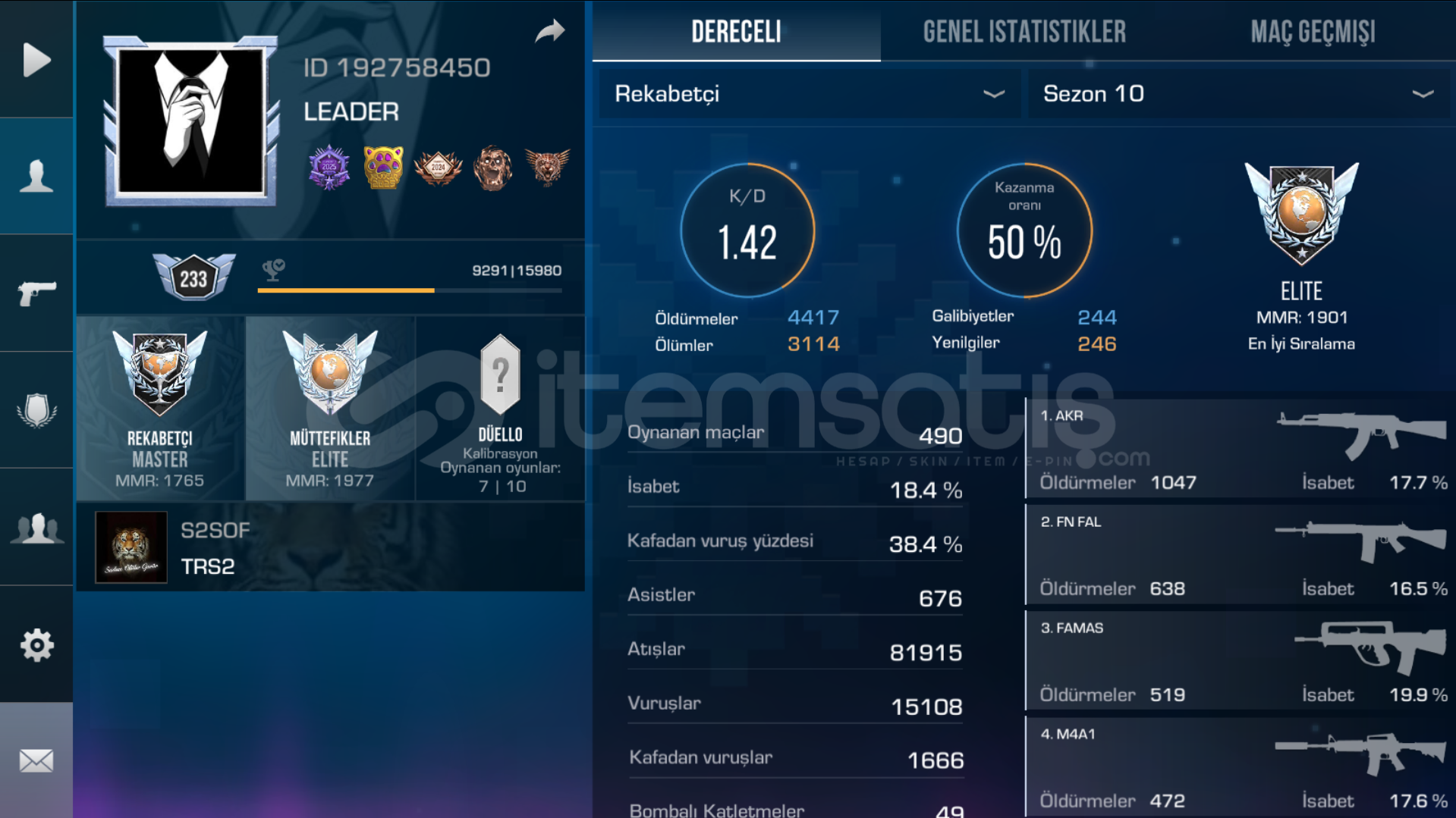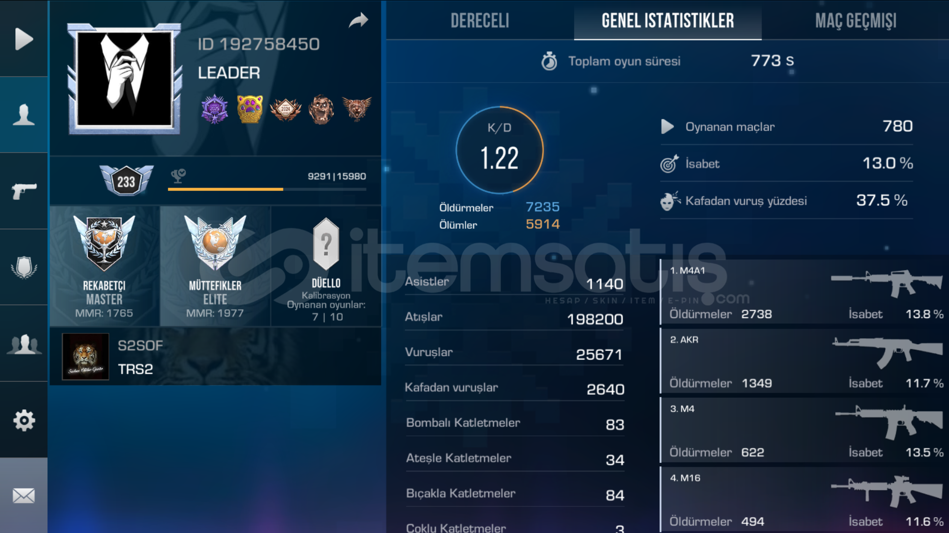 TR | 53 Skin | Lv135 | Zümrüt IV Ranked