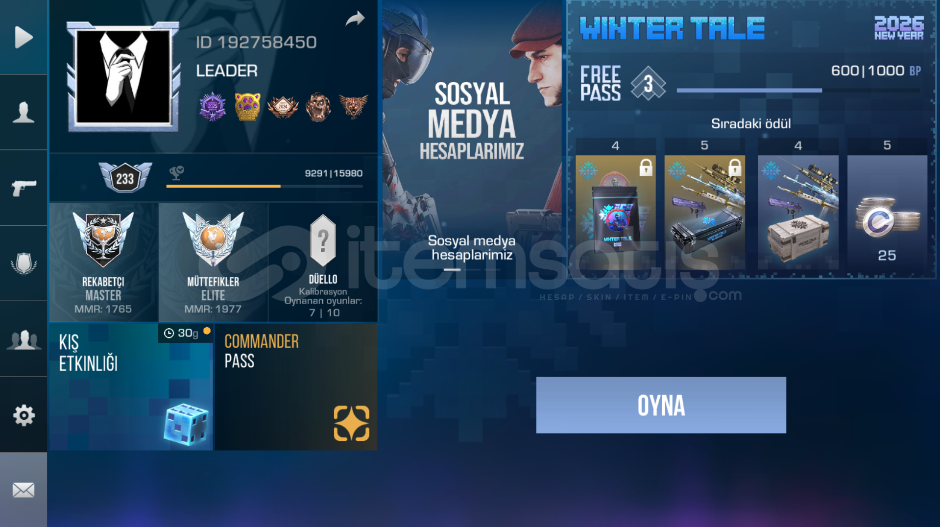 Merhabalar öncelikle hesabı 1 buçuk senedir aktif şekilde kullanıyorum ve 2025 ocak ayından bu yana 30.000 gold görmüş bir hesaptır hesap içinde fotoğraflardanda gördüğünüz üzere KARAMBİT NEBULA - GLOVES RAVAGE eldiven ve bir çok silah aksesuarı mevcuttur hesap hiçbir şekilde geçici ban yememiştir tertemiz hesaptır.Aktif olarak oyun oynayan arkadaşlar...