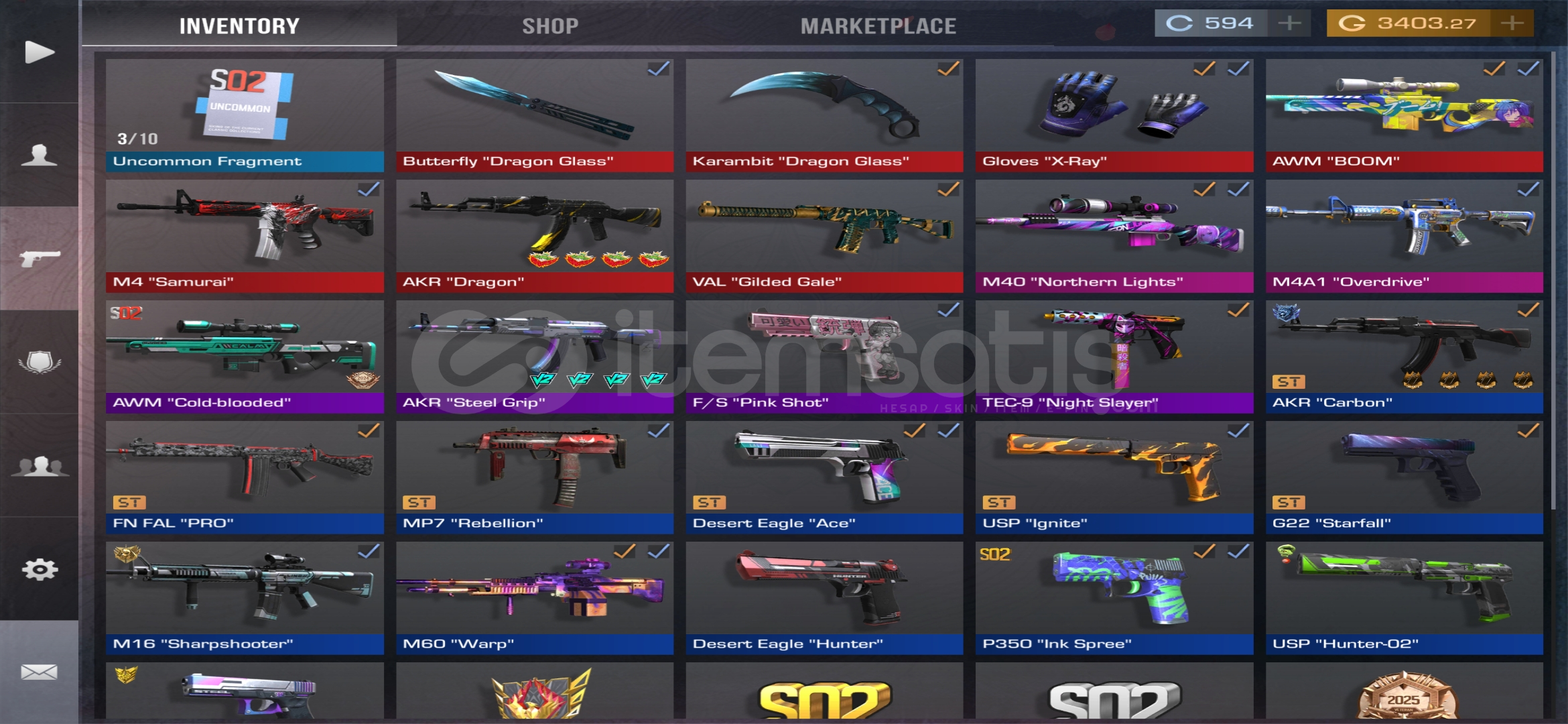 hesapta ayrıyeten 3k gold,15k gold değerinde de envanter var.