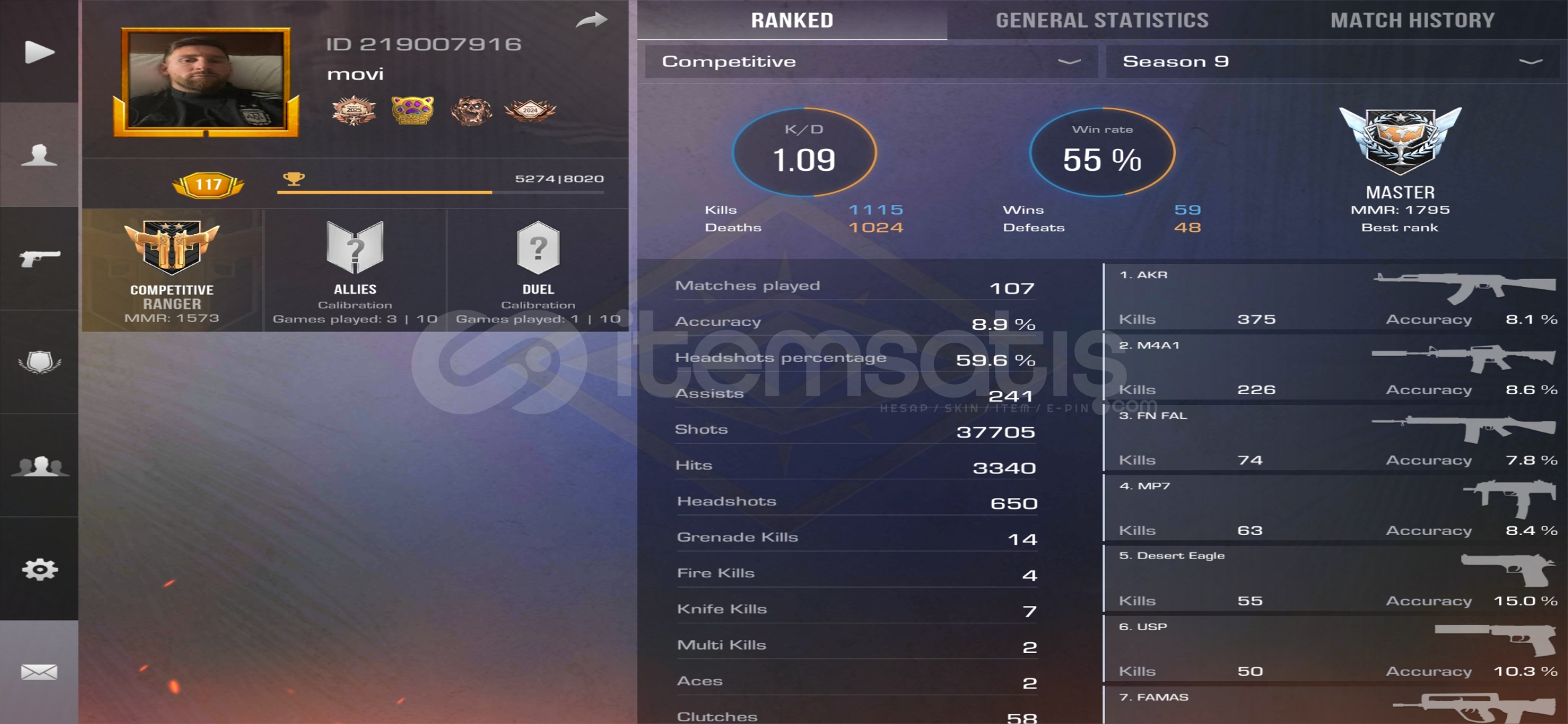 Rank : bu sezon hiç oynanmadı önceki sezon elit.hesapta ayrıyeten 3k gold,15k gold değerinde de envanter var.sadece google ...
