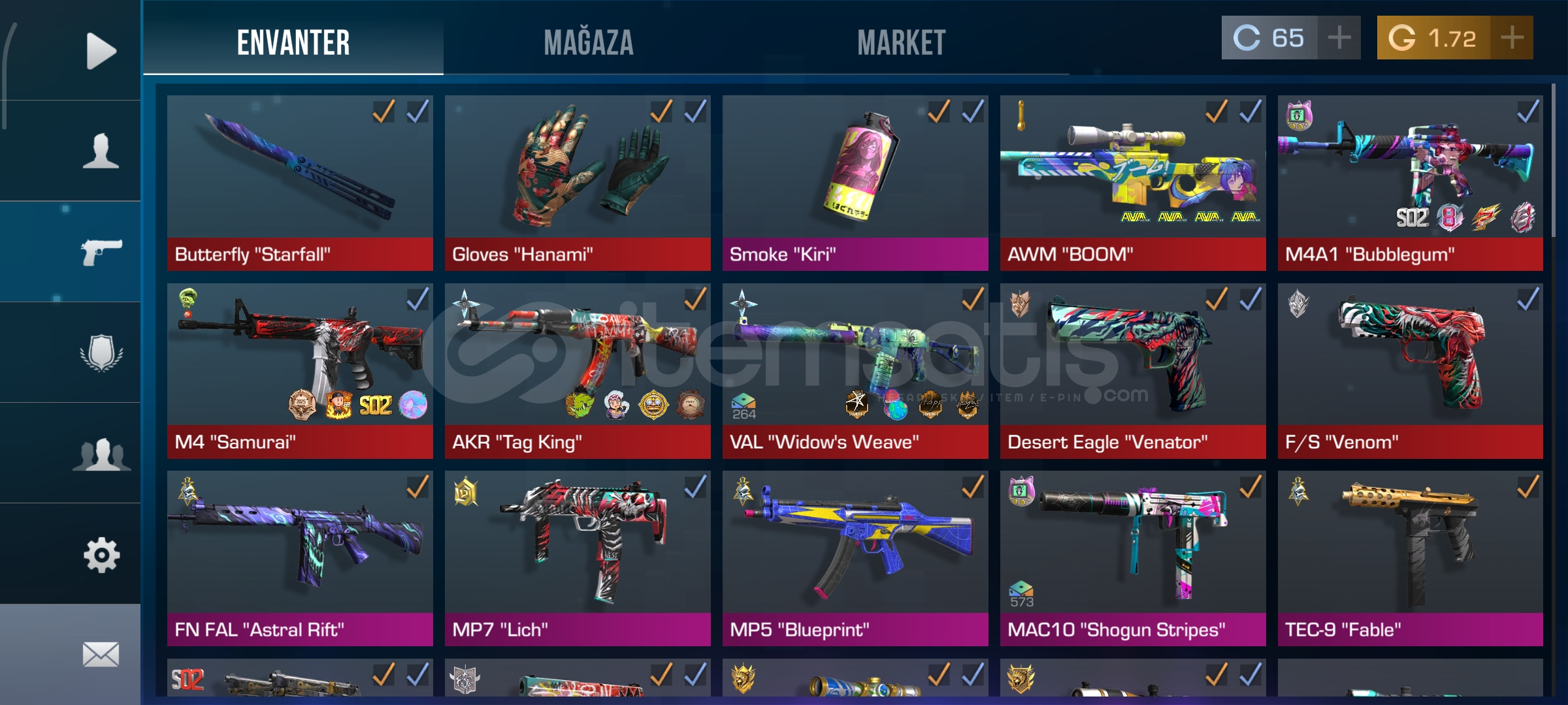 Hesapta tüm silah desenlerinde aşırı iyi desenler vardır 115 lvl emek hesabı oynamadigim için satıyorum ciddi alıcılar gelsin