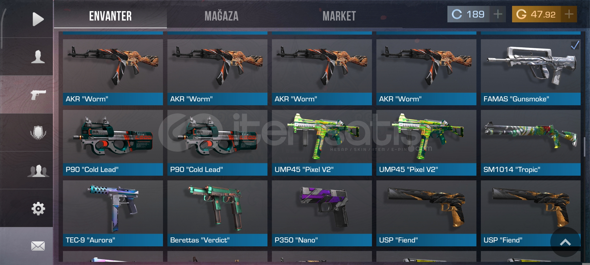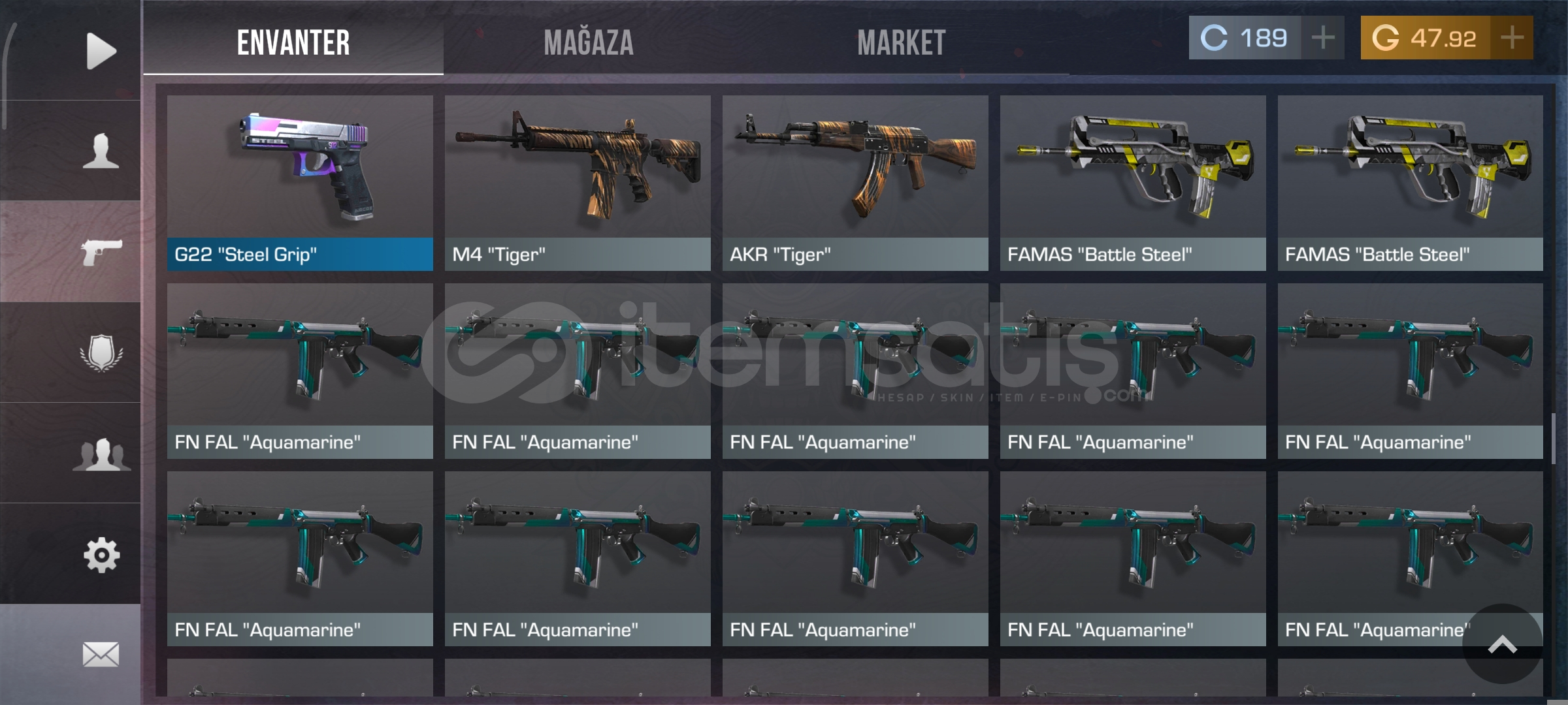 Hesapta bıçak silah kombini vardır ve çok değerli stickerler ile donatılan stattrackli bir AKR miz daha vardır hesaba cidden çok para bastım ama şuan durumum yok hesabı satmak zorundayım son verebileceğim fiyat bu sadece değerli silahlar ile hesapladim fiyatı ciddi alıcılar lütfen gelsij konuşsun 2000 tl ye kadar düşerim dediğim gibi komisyonu katıyorum komisyon ile 2000 tl nin altına düşersem hala eksik param kalıyor o para cidden çok lazım ciddi alıcılar gelsin gerçek satıcıyım kandırmam etmem hesabı alır gidersiniz