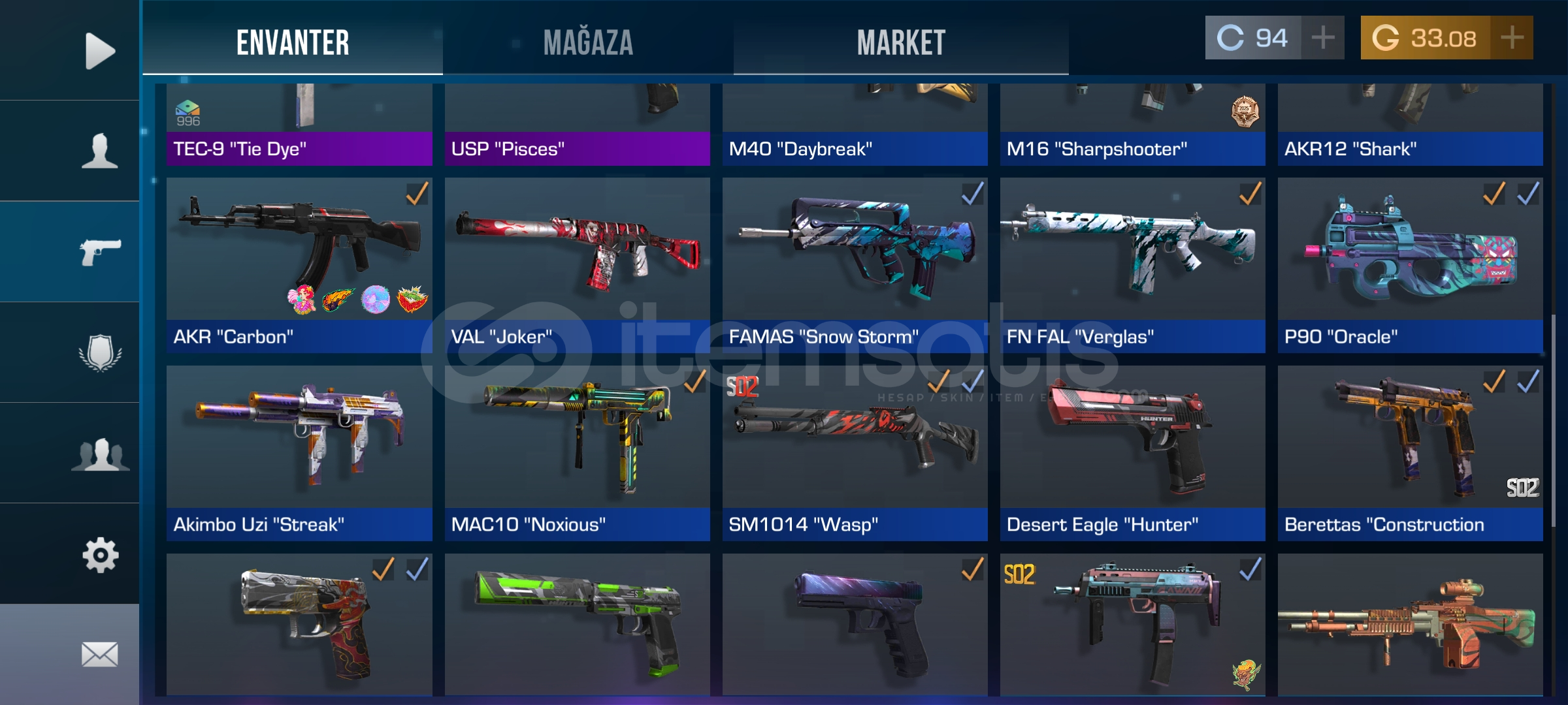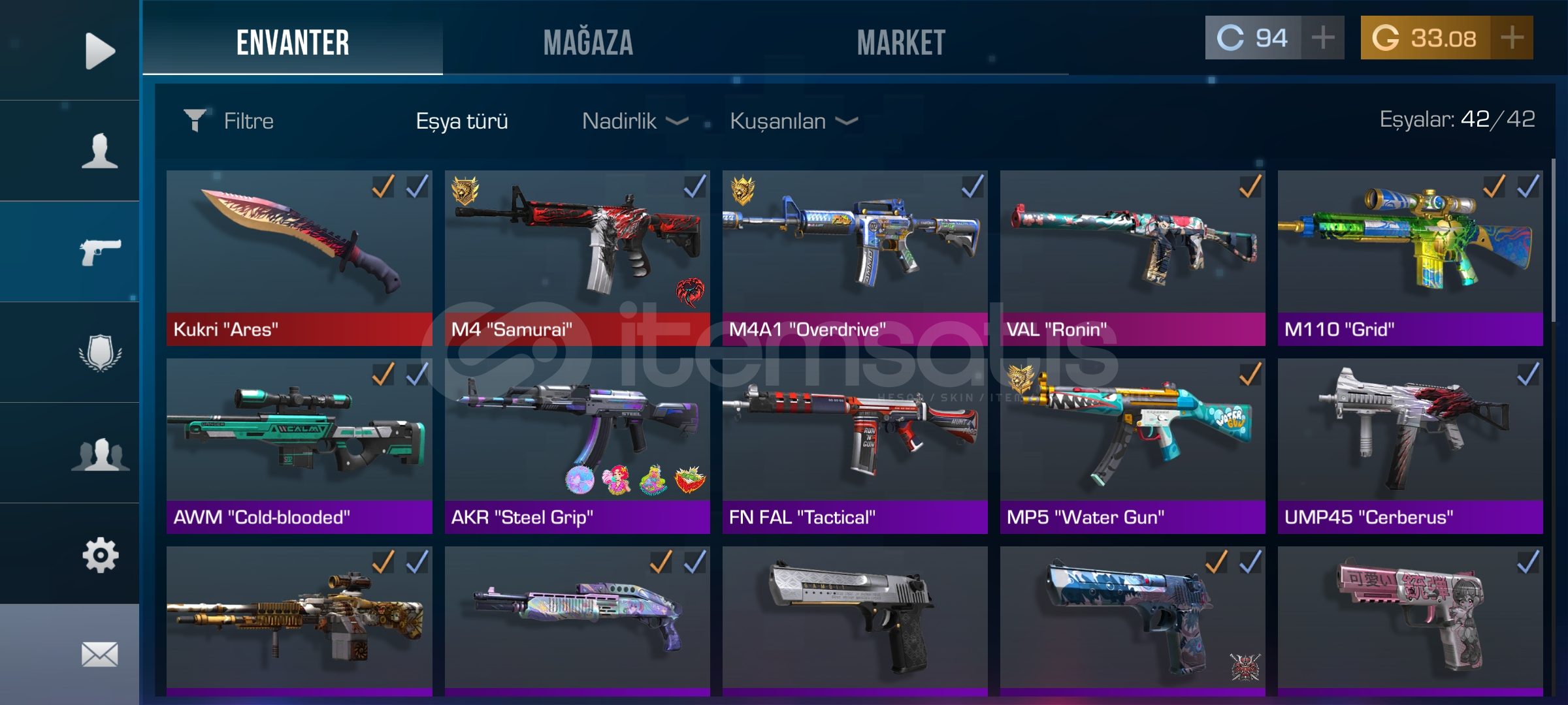 her silaha ait skin bulunmaktadır.GOLD HESAPAK47 için özel pahalı 4 tane sticker bulunmaktadır yaklaşık toplam değeri 300GBIÇAK KUKRİYAZIN PAZARLIK PAYI VARDIR