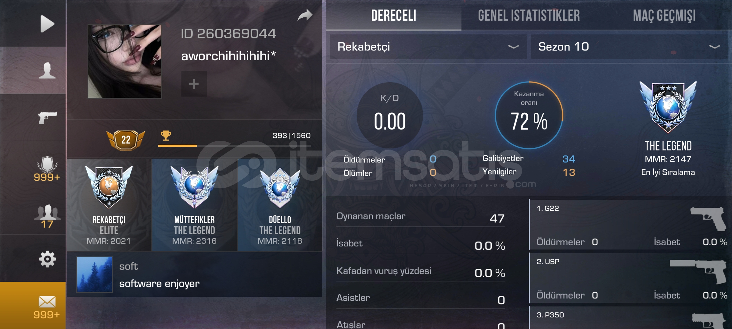 Standoff 2 Legend Hesap Kelebek Ve Eldivenli