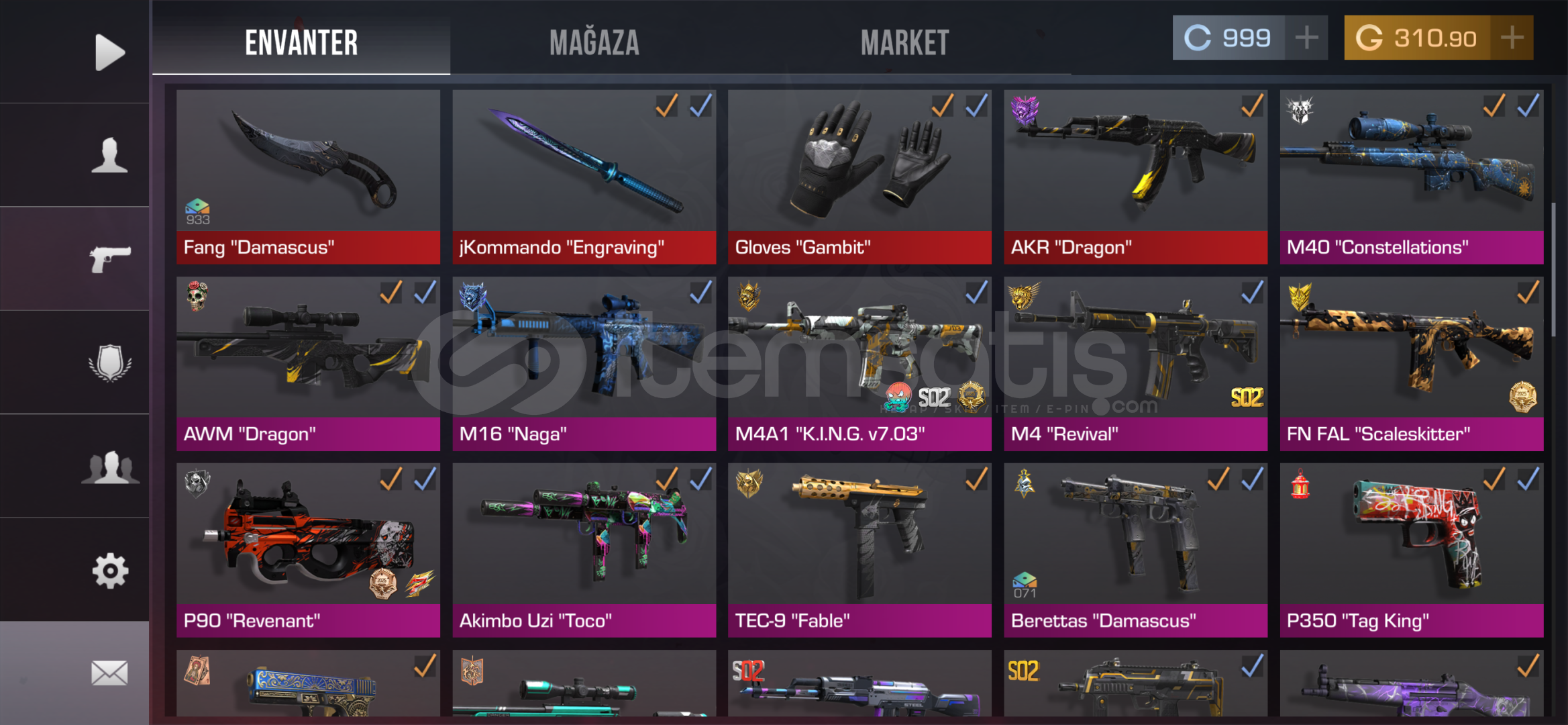 310.90gold,gold pass, açılmamış bir kaç adet gold pass itemi, 4 adet kırmızı öğe, yaklaş...