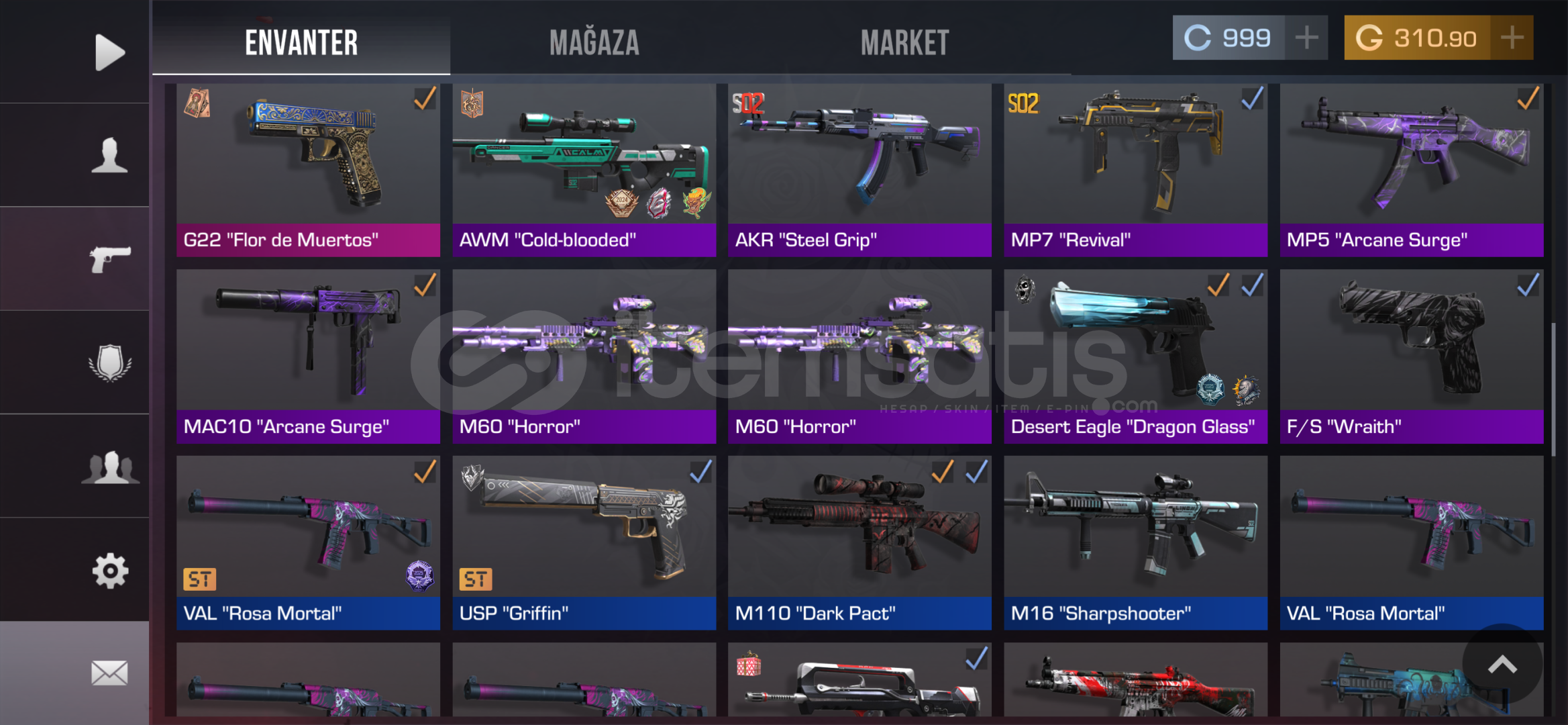 310.90gold,gold pass, açılmamış bir kaç adet gold pass itemi, 4 adet kırmızı öğe, yaklaşık 10-15 adet pembe öğe, 210 seviye, 2 sezon müttefik legend, 663 saat, klan R3S3T (mevcut)