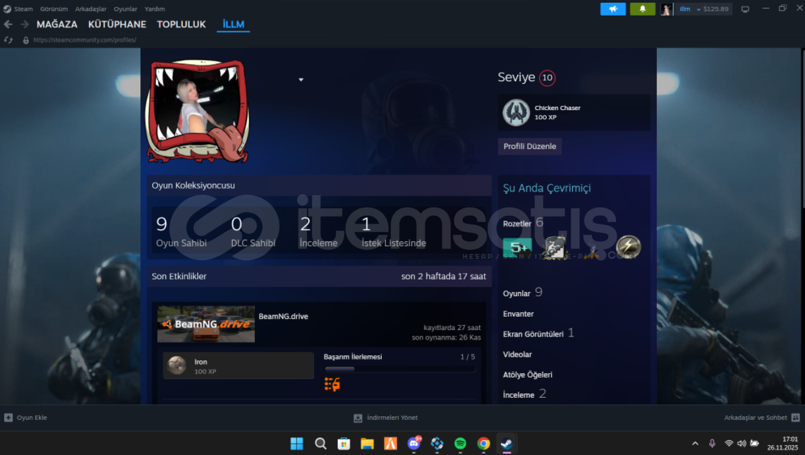 10 LVL STEAM HESABIM SATILIKTIR İÇİNDE 125 DOLAR VE SEVİLEN OYUNLAR VARDIR BU FİYATTA PİYASADA BÖYLE HESAP YOKTUR KAÇIRMASATIN ALDIGINIZ GİBİ HESABI SİZİN ÜZERİNİZE GEÇİRİYORUZİÇİNDEKİ OYUNLARRED DEAD REDEMPTİON 2RUSTESCAPE BACKROOMS TOGETHERBEAMNG DRİVEPROJECT ZOMBOİDSADECE OYUNLARUN FİYATI ZATEN 4K ARTI HESAB BAKİYESİNDE 125 DOLAR VARDIR Hİ&Cc...