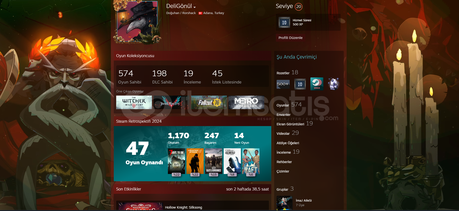 10 YILLIK 20 LVL 574 OYUNLU STEAM HESABI