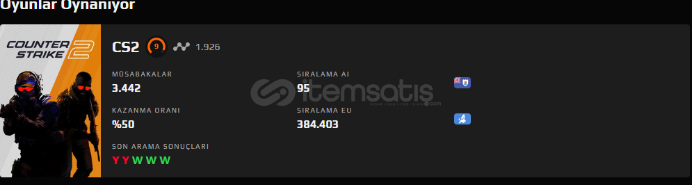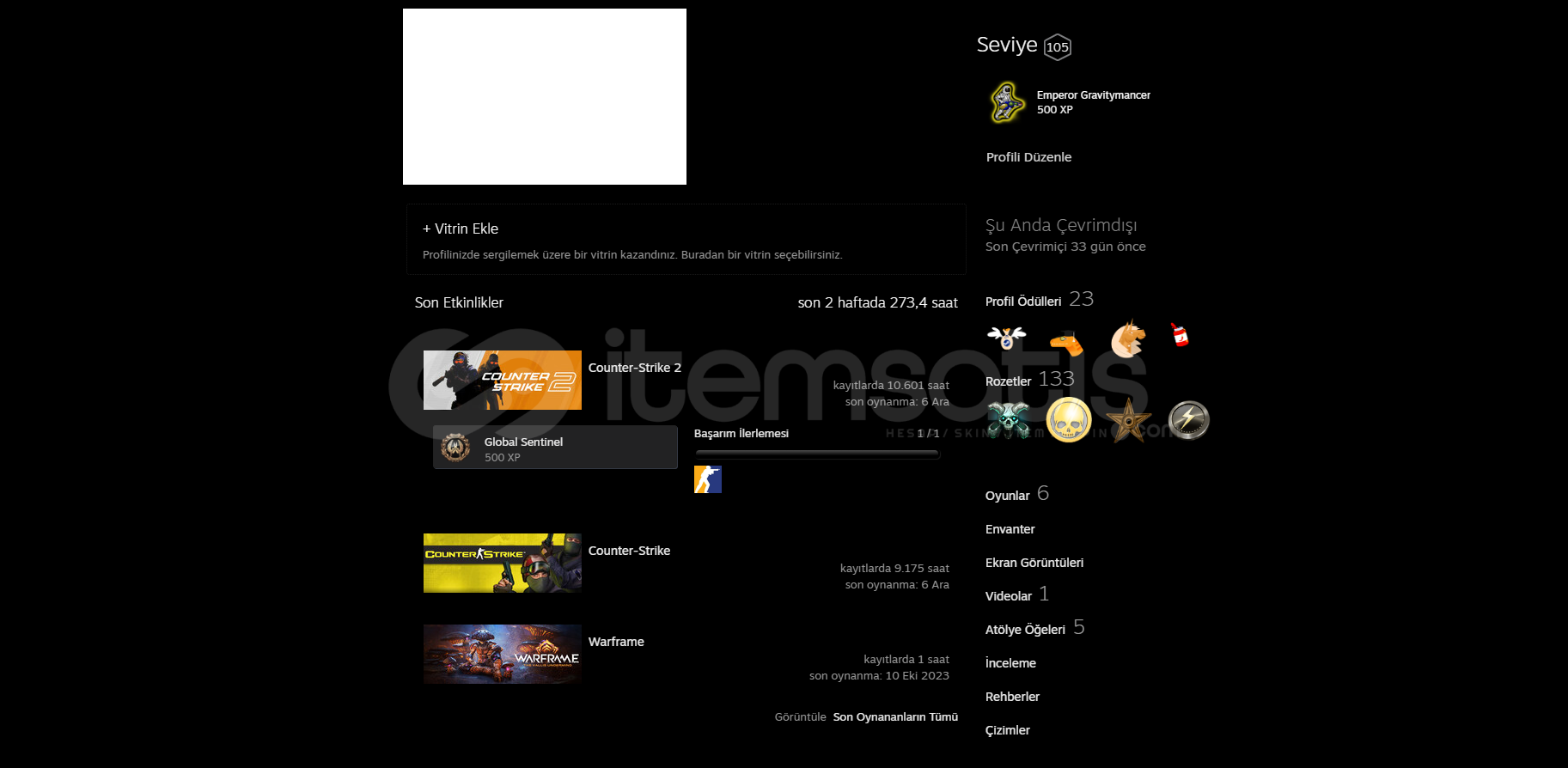 Öncelikle hesabımı artık reel sorunlardan dolayı çok fazla bilgisayarda vakit geçiremeyeceğim için satıyorum ve uygun fiyata verdiğimi düşünüyorum.Hesabı 4 Mayıs 2021 tarihinde kurdum.Hesapta sadece cs 1.6 ve cs 2 oynamış bulunmaktayım.Hesap seviyesi 105 leveldir.Hesap puan dükkanın da 102 k puan bulunmaktadır ayriyetten bir çok profil çerçevesi,oyun profi...