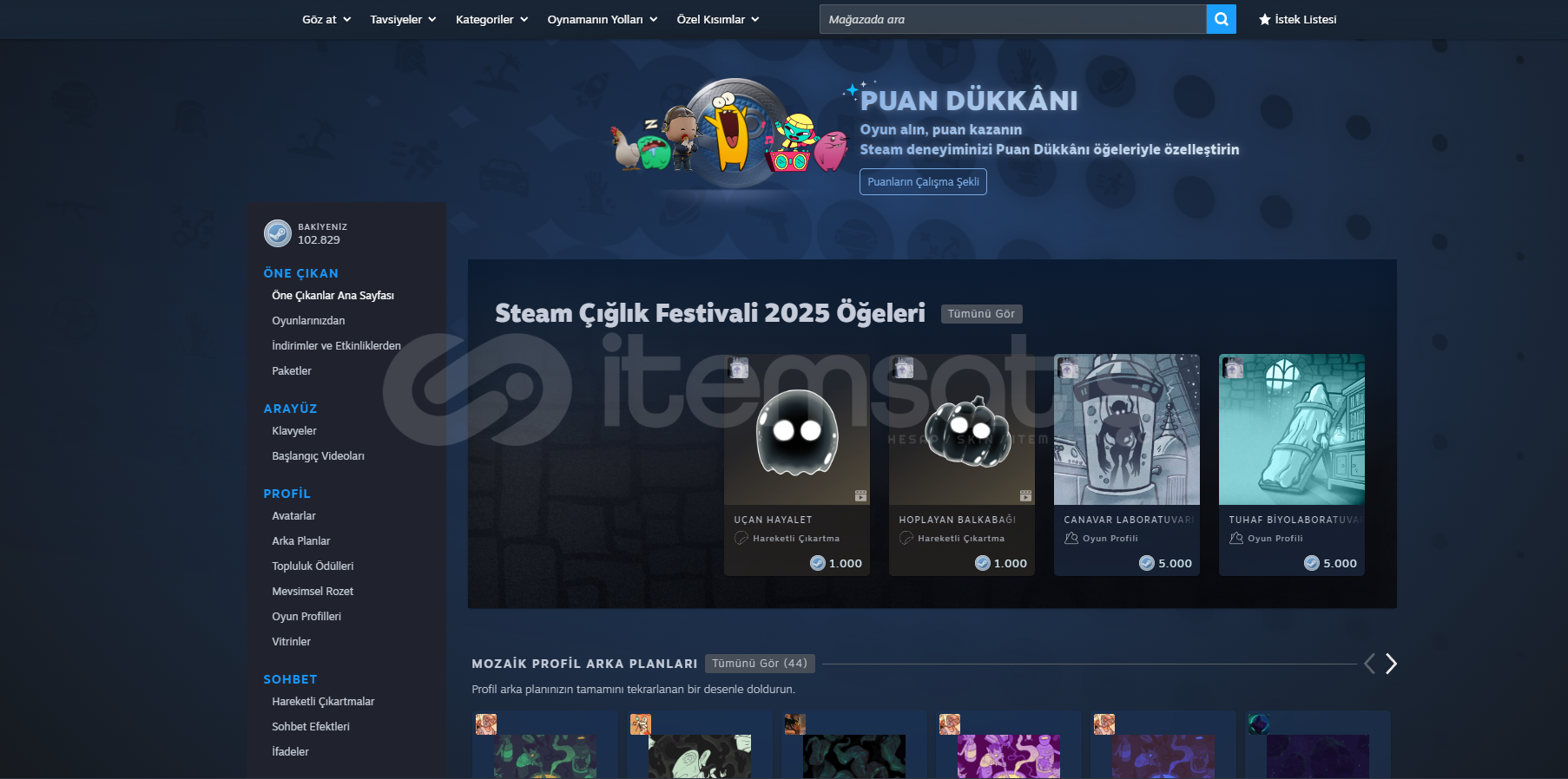 Hesap puan dükkanın da 102 k puan bulunmaktadır ayriyetten bir çok profil çerçevesi,oyun profili,ifadeler,arka planlar mevcuttur.