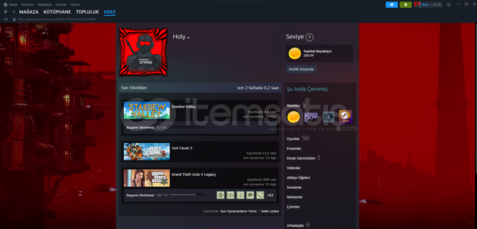 ⭐$142 Dolar Değerinde Steam Hesabım⭐