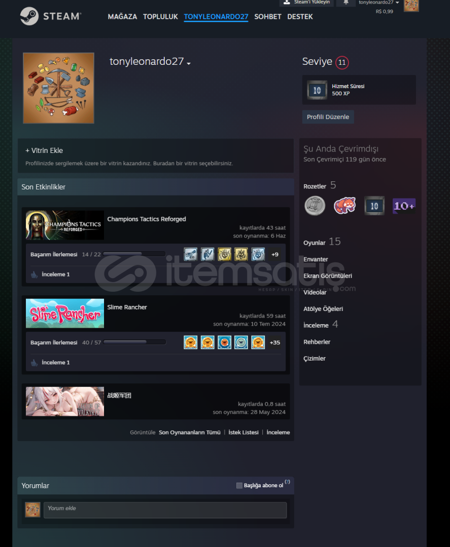 *Hesapta Slime Rancher, HEADLINER, Headliner: NoviNews, Scribblenauts Unlimited, Blood Bowl 2 - Legendary Edition, XCOM 2: Reinforcement Pack, XCOM 2, XCOM 2: War of the Chosen - Tactical Legacy Pack, XCOM 2: War of the Chosen, XCOM 2: Resistance Warrior Pack, Pathfinder: Kingmaker — Enhanced Plus Edition, Darkest Dungeon, CHKN, They Are Billions, Among Us, Dicetiny,  Oyunları Bulunmaktadır*5$ Limiti Mevcut Değildir, İstediğiniz Trade İşlemlerin...