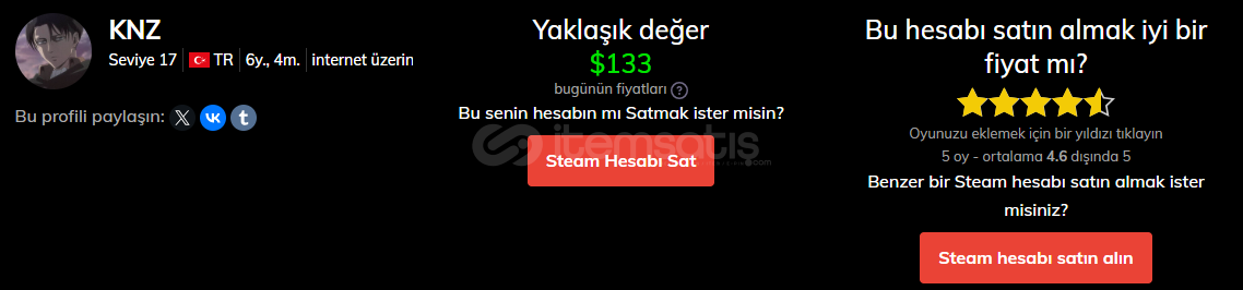 17 level steam hesap borç olduğu için satıyorum