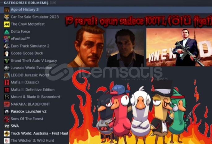 19ücretli oyunu barındran steam hesabını ölü fiyata bırakıyorum(benden kaynaklı sorun yoksa iade almıyorum)