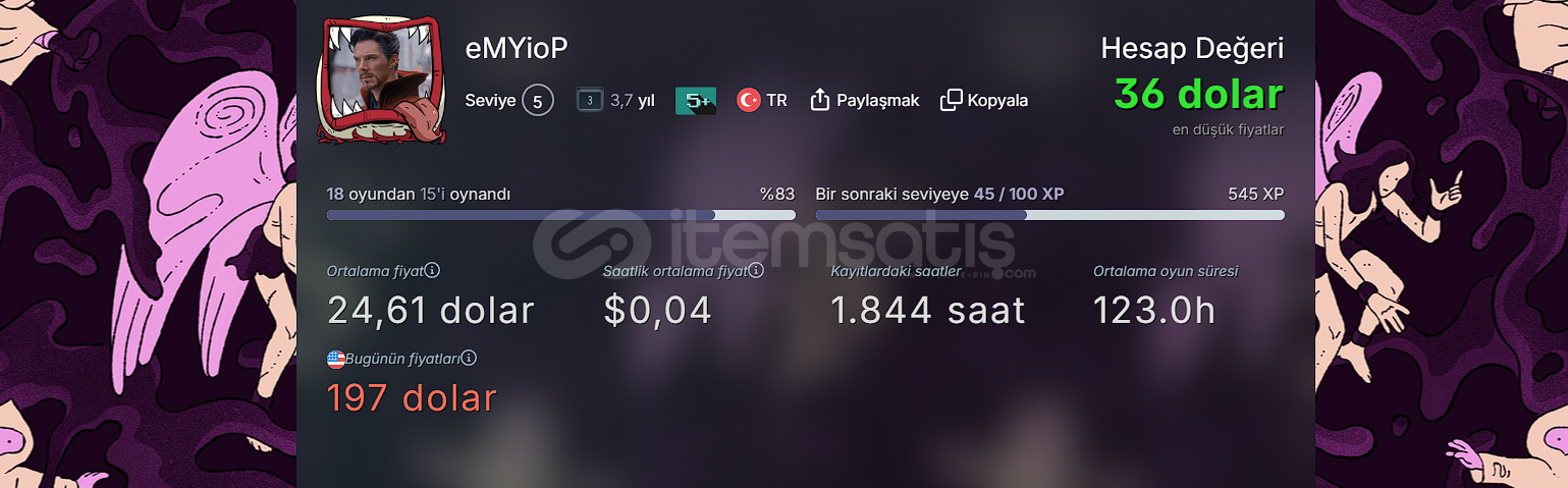 Kendi hesabım bu aralar neredeyse hiç oynamıyorum bu yüzden satacağım.İndirim belli miktar olur.