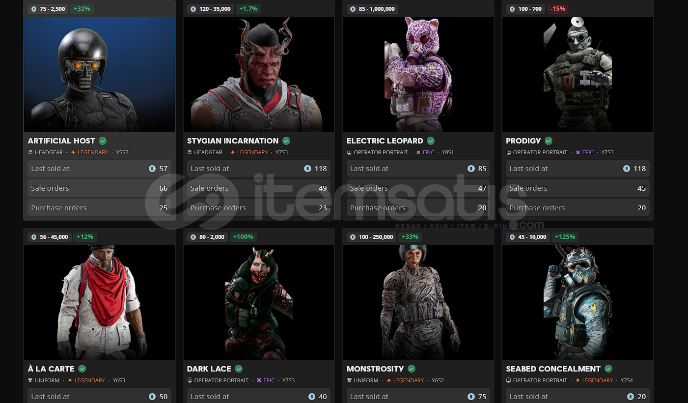 Kendi hesabım bu aralar neredeyse hiç oynamıyorum bu yüzden satacağım.İndirim belli miktar olur.En çok oynadığım oyun R6S bu yüzden hesap çok dolu resimlerde tüm kostümleri koyamadım ama %70 kadarında kıyafet skin var,alibi elit var.Hepsini tamamen kendim kastım ve aldım.En son gelen defans operatör dışında,bütün karakterler var.Oyunda hiçbir şekilde...