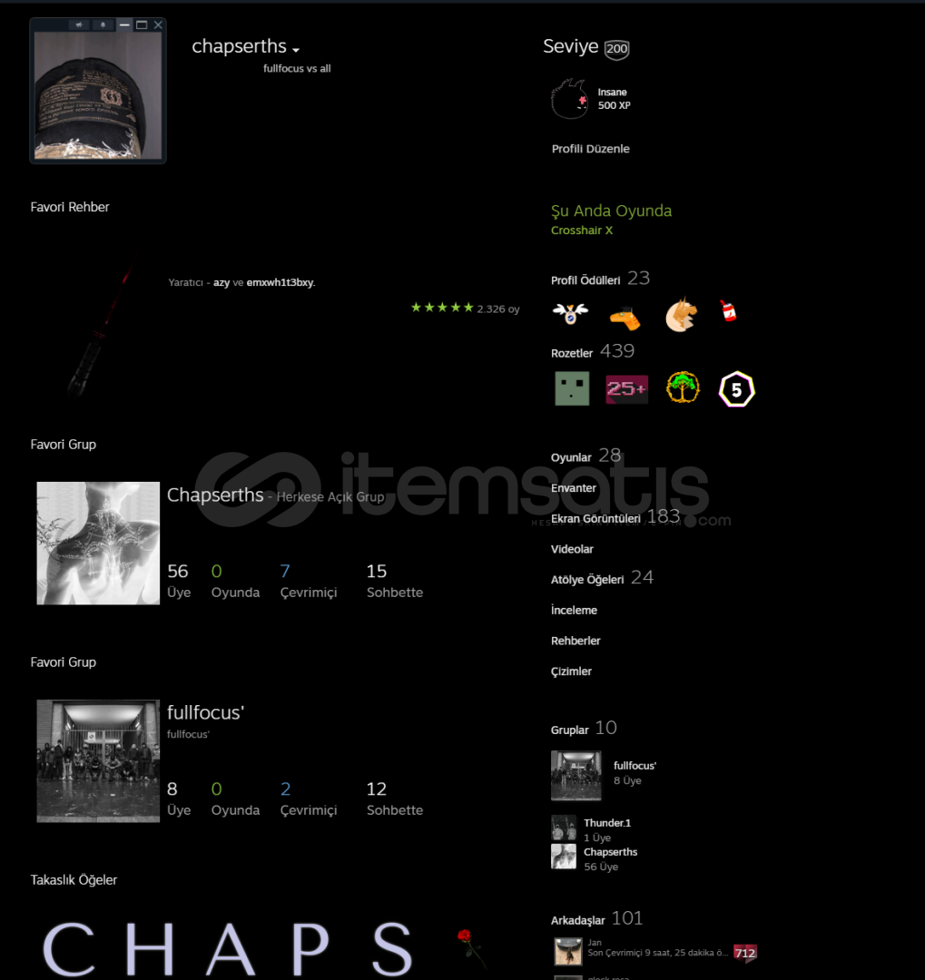 İlgilenenler gerçekten varsa satacağım hesabı değerinde satmak istiyorum baya bi emek var üzerinde sadece cs değil cs eski olabilir evet ama yıl vediğer oyunda çok degerli satın alınamayacak itemler var ona göre fiyat düşünecekler yazsınnerdeyse steam level parasını tek istiyorum o derece paraya ihtiyacım var