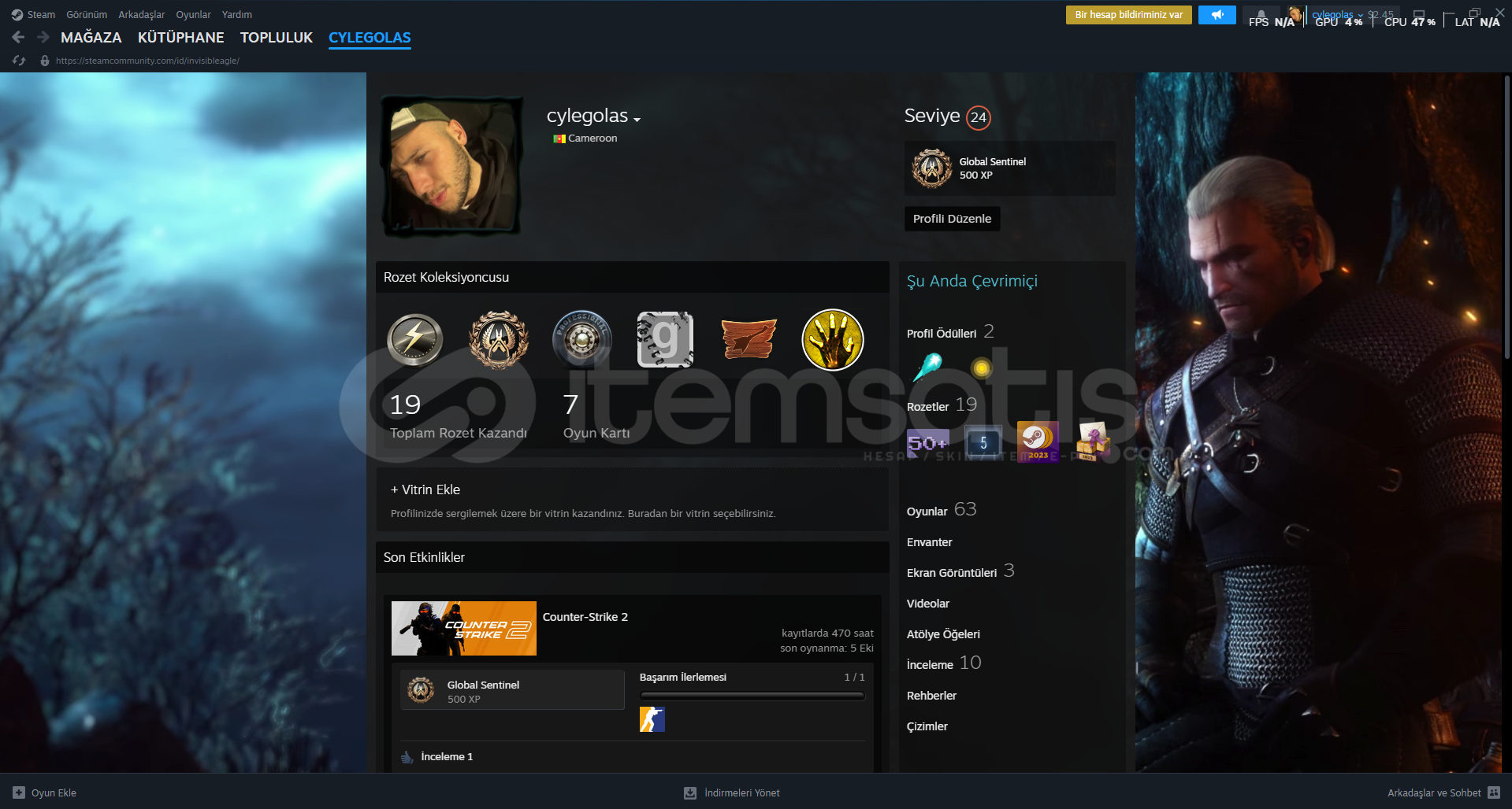 24 LVL 1487 DOLAR DEĞERİNDE STEAM HESABI