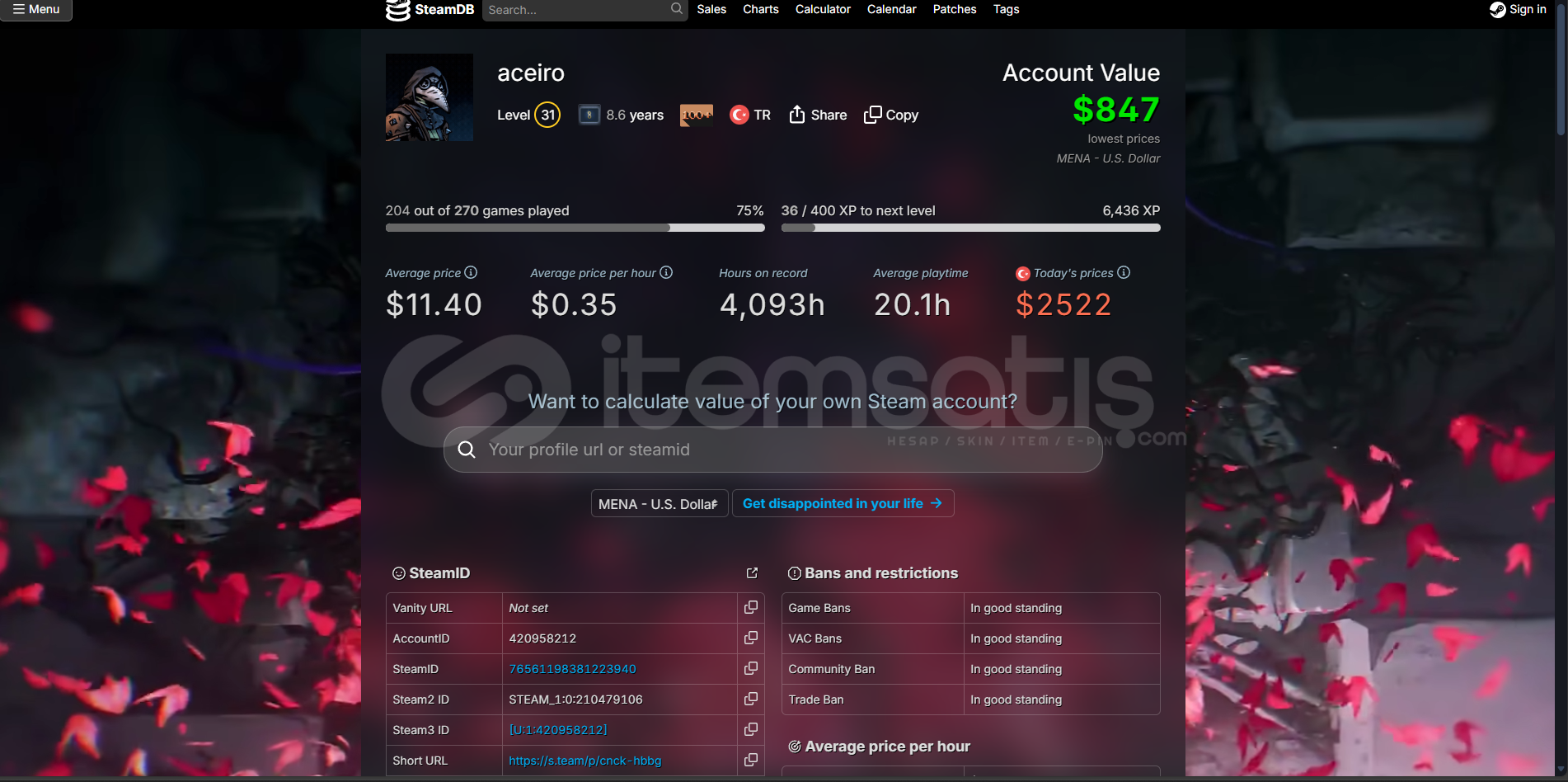 çok fazla oyun mevcut cs2 de önemli rankı var saatı 1500 saate yakın seçkini kuvvetli. https://steamcommunity.com/profiles/76561198381223940/incelemek ısteyen bakabılır cok memnun kalırsınız ömürlük hesaptır.