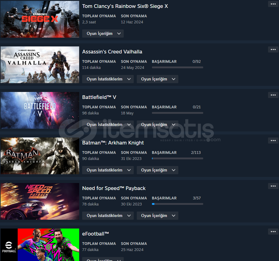merhabalar 2023 yılından itibaren kullandığım hesabı devretmeye karar verdim.Hesap içeriği Cs 2Forza 4Battlefield 17 Days To DieCall of Duty Mw3Hogwarts LegacyEts 2Sherlock Holmes: The Devil's DaughterSupermarket SimulatorRainbow Six® Siege XBattlefield™ Vvs.. bir çok değerli oyun bulunmakta.