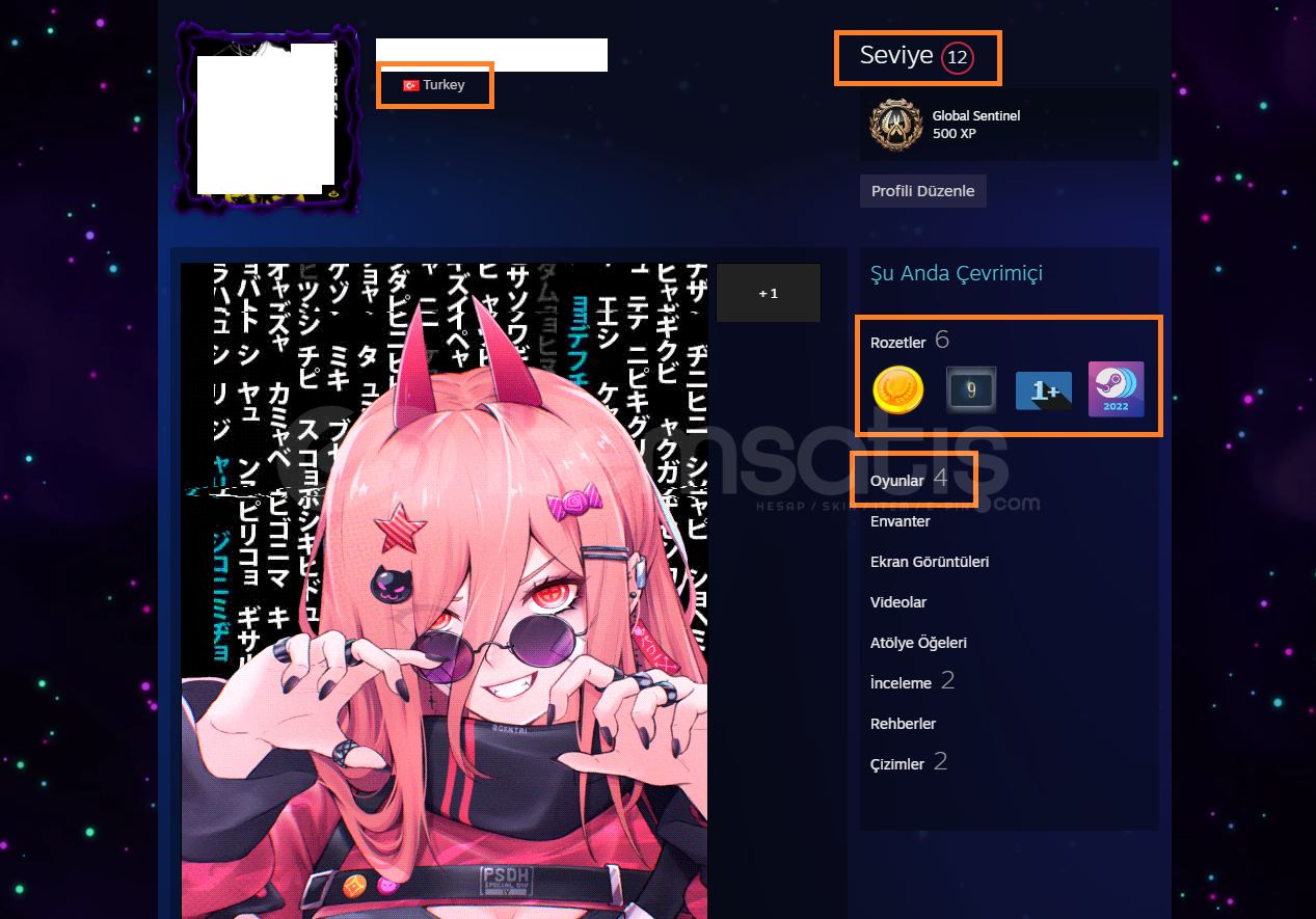 STEAM LV:12 LV ÇİZİM VİTRİNLİ HAREKETLİ ARKA PLAN VE ÇERÇEVE MEVCUT