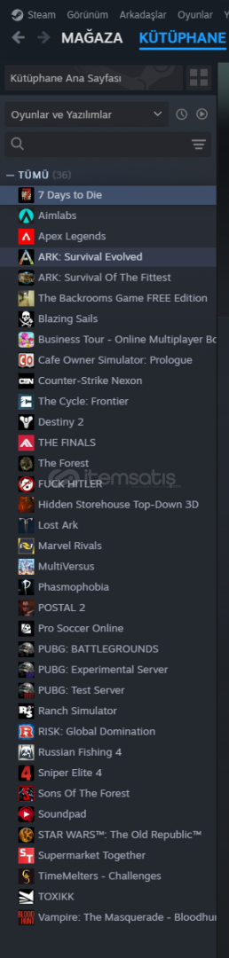 Hesabın İçeriğinde Kayda Değer Oyunlar ŞunlardırPhasmaphobia7 Days To DieForestSons Of the ForestRanch SimulatorSoundpadSniper Elite 4Pro Soccer OnlineBlazing SailsHidden Storehouse Top-Down 3D (Bu oyun Steam Keyden Çıktı 200 Dolar Değere Sahiptir Kötü Bir Oyun Fakat Değerlidir)Hesabı Üstünüze Alana Kadar Her Türlü İşlemde Yardımcı Olacağız%100 Güvenilirdir