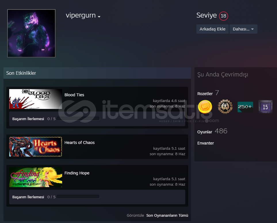 ✅STEAM HESABI ✅ 18 LV STEAM 🟩 2010' KAYITLI 🟩 250+ KOLEKSİYONER ROZETİ