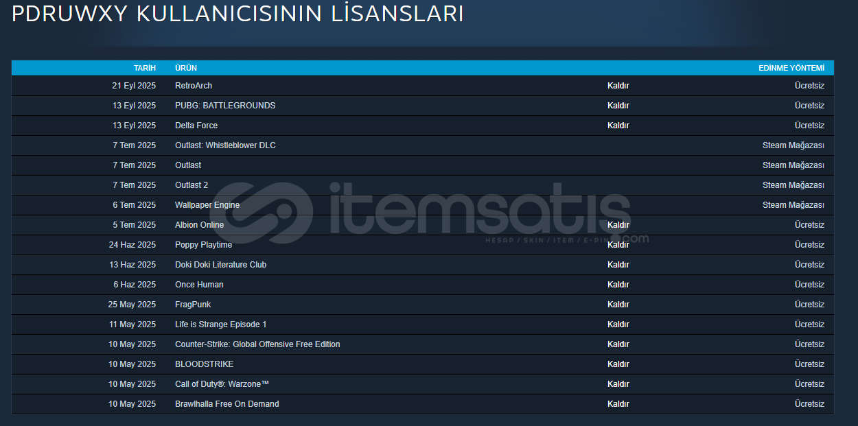 🎮 Hesapta Bulunan Oyunlar:Outlast, Outlast 2, Wallpaper Engine, Outlast: Whistleblower DLC💰 5$ Limiti YokturTüm trade ve pazar işlemlerinizi herhangi bir kısıtlama olmadan gerçekleştirebilirsiniz.🌍 Hesap Ülkesi: Brezilya📦 Teslimat ve Hesap BilgileriHesabı satın aldıktan hemen sonra tüm bilgiler otomatik olarak karşınıza çıkar.Herhangi bir adımda takılırsanı...
