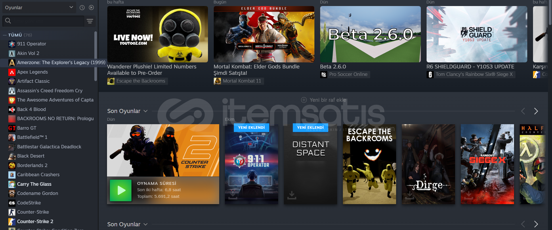 🎮 Toplam 50’den fazla oyun bulunan, dolu dolu bir Steam hesabı.