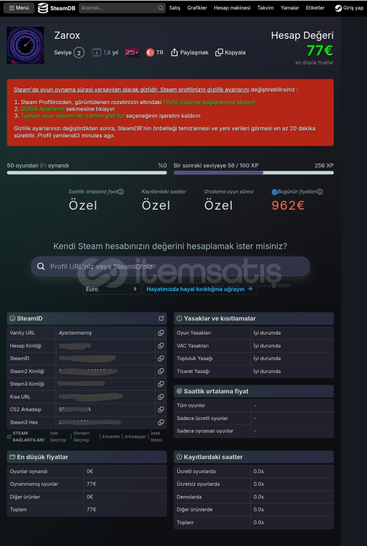 Merhaba Arkadaşlar Efsane Hesap temiz Gmail ve Telefon numara değişime açık Tertemiz hesap oyun oynanmamış Bilgesayarım olur diye bi hayale kapılıp Oyunları satın aldım Hevesimden vazgeçtim satılık piyasanın altında satıyorum.ErzurumPortalLeft 4 Dead 2Euro Truck Simulator 2Half-Life 2The ForestOmanLeft 4 DeadHuman: Fall FlatAssetto CorsaForza Horizon 4Team Fortress 2Outlast 2DEVOURYUMTAKHalf-Life 2...