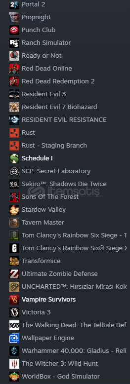 profil linki girip hangi oyunların olduğuna bakabilirsiniz https://steamcommunity.com/id/Axortis3/