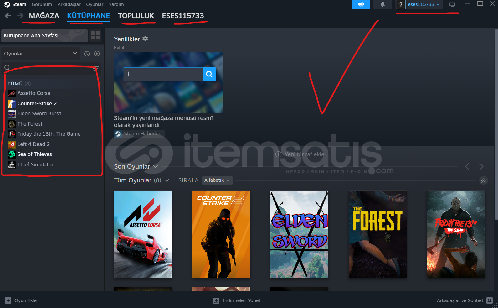 Hesap değeri 70 dolar civarıdır günümüz parasıtla 3000 TL yapmaktadır içindeki oyunlar:Asetto Corsa-10.50.....E.S.Bursa-5.....The Forest-10.50.....L4D2-6.....Sea Of Thieves-27.....Thief Simulator-10.50 dolar olup Friday the 13th de bulunmaktadır-----mail ve şifreyide vereceğiz hesap kişisel hesaptır -----1SENE GARANTİ-----