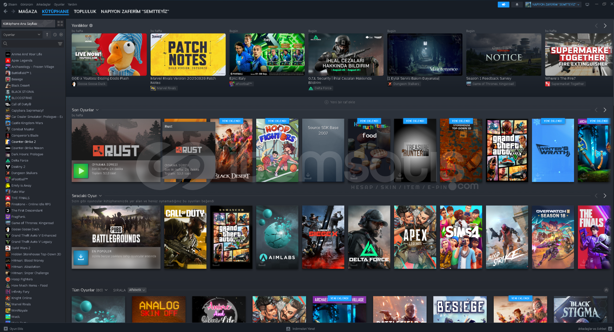 GTA 5 İN TÜM VERSİYONLARI AYRICA RUST HİTMAN BATTLEFİELD GİBİ POPÜLER PAHALI OYUNLARI KAPSIYOR