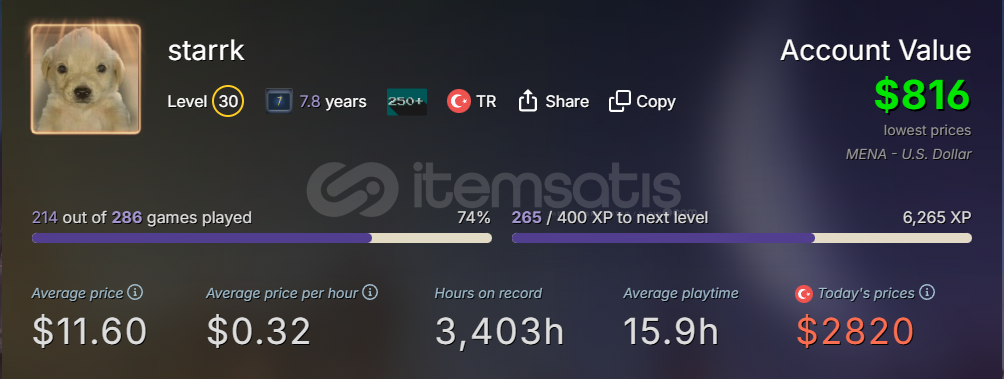 para ihtiyacından dolayı satılıktır hesabı kendiniz incelemeniz için link: https://steamcommunity.com/profiles/76...