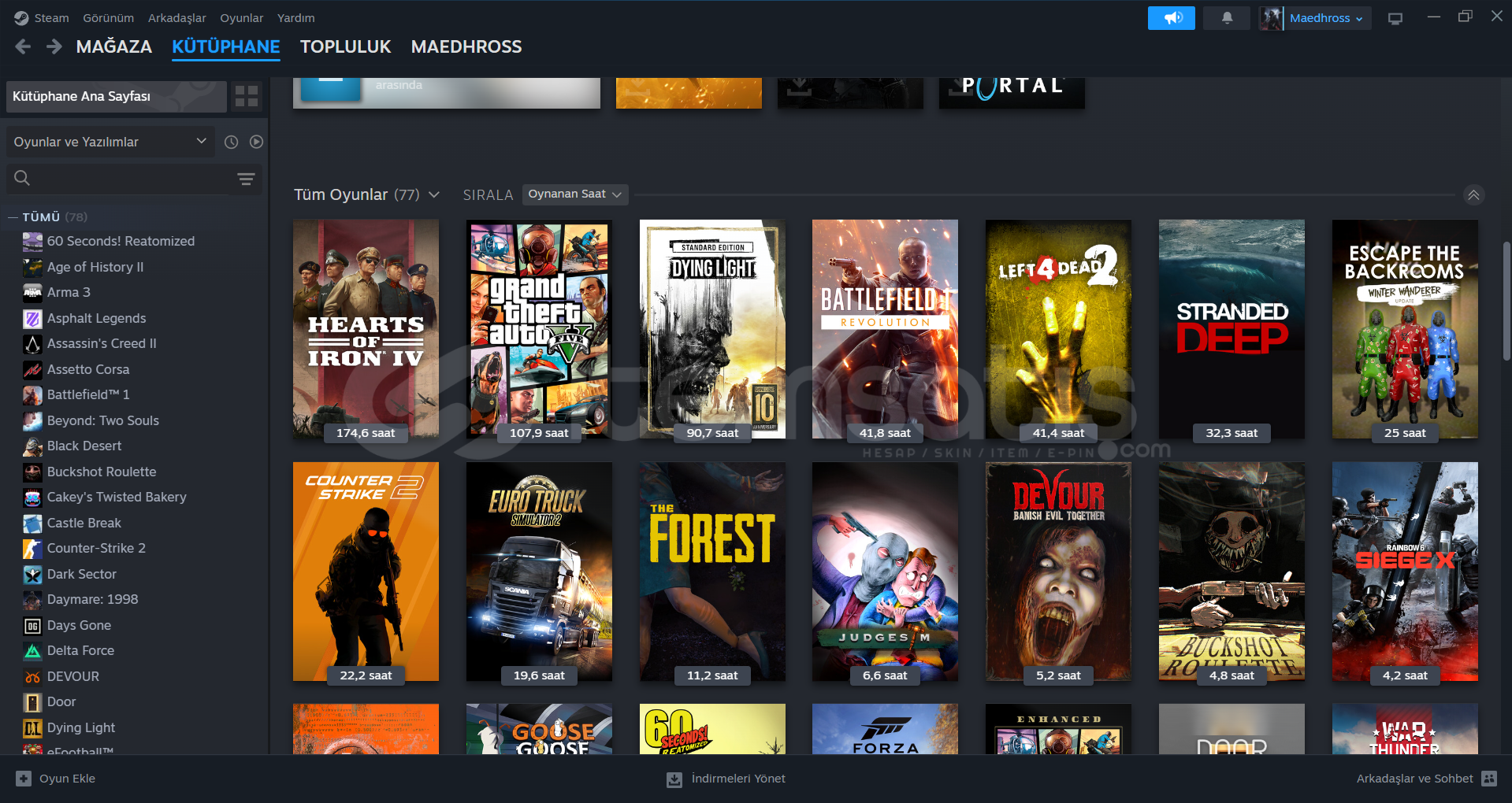 Kişisel Steam Hesabım Satılıktır. Artık Oyun Oynamadığım İçin Satıyorum. Pazarlık Sünnettir. https://steamcommunity.com/profiles/76561199376272346/Steamdb ;Hesap değer = $163Bugün Değeri = $350Toplam 611 SaatHerhangi bir ban bulunmamaktadır!Hearts Of Iron 4Strended DeepCS2Gta VDying Light Full PaketBattlefield 1Left 4 Dead 2Escape The BackroomsEuro Truck Simulator 2The ForestJudgesimDevourBuckshot Roulett...