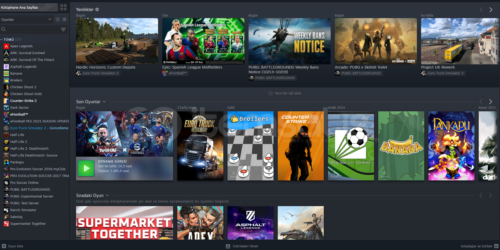 🔴Hesap emek hesabıdır.📋 33 adet DESTANSI🍀📋4 adet EFSANEVİ🔴📋11 adet SHOW TİME♣️.Steam hesabı verilecektirİçindeki oyunlar👇📋ARK: Survival Evolved📋eFootball PES 2021 SEASON UPDATE (Mağazadan kaldırıldı değerli bir oyun)📋Euro Truck Simulator 2📋Half-Life📋Half-Life 2📋Pro Soccer Online📋Ranch Simulator.♻ʊ...