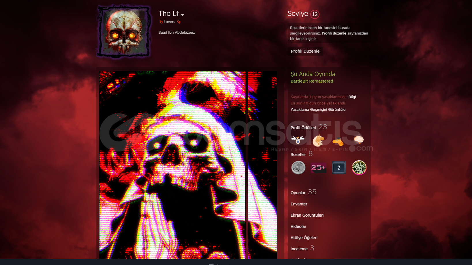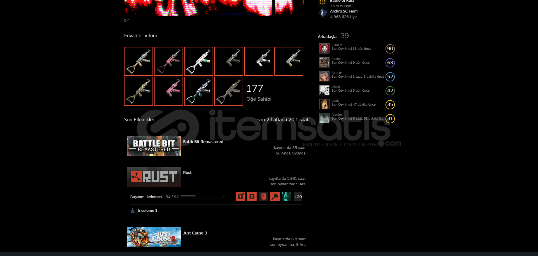 Arkadaşlar sadece Rustdan banı mevcutdur zaten her yıl yada 2 yılda bir unban geliyor oyuna bilgisayarı sattığım için hesabımı da satıyorum oyunlara ara verdim kendi main hesabımdı göz bebeğim gibi bakıyordum fakat kardeşimin rust açıkken açtığı cheat engine yüzünden ban yedim bu tarz false banlar her yıl temizleniyor diye biliyorum Profil yorumları ge...