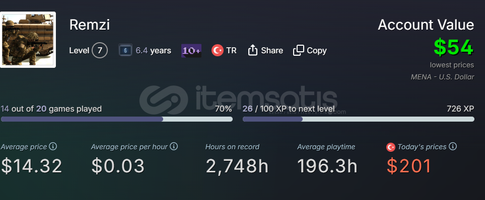 oyun oynamayı bıraktığımdan dolayı satıyorum. cs2 de seçkin hesabı var + 8-9 dolar değerinde satılabilecek skinler var. ets2 de bazı dlc ler var. hesabın minumum değerinin yarısına satıyorum hızlıca satılsın istiyorum cüzzi bir pazarlıkta olabilir.