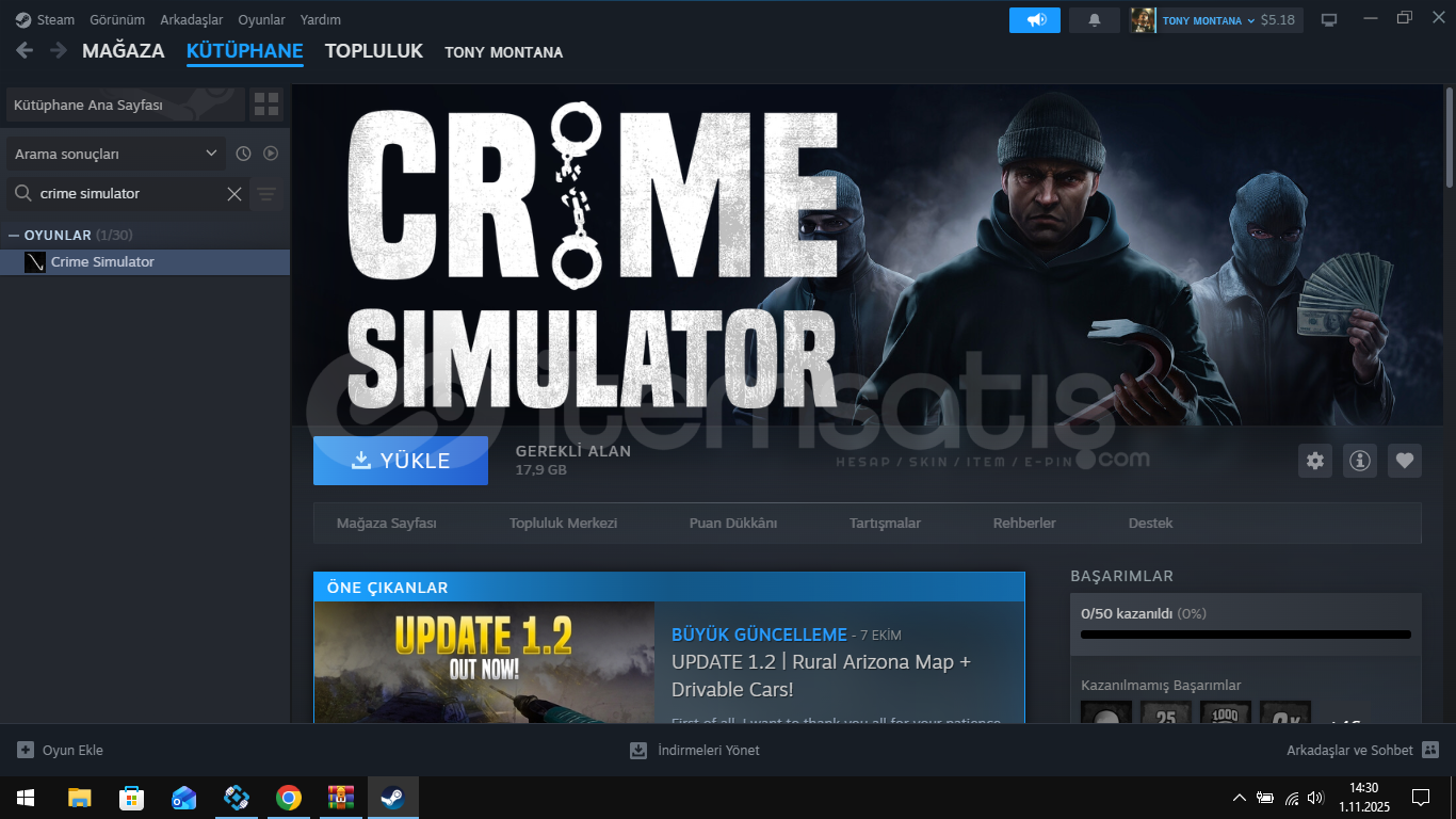 Merhaba!NOT: EVET ONLİNE OYNANMAKTADIRBu ilan sayesinde Crime Simulator oyununu Steam hesabınıza ekletebilirsiniz. İşlem özel bir 3. parti yazılım ile yapılmaktadır fakat tamamen güvenlidir ve hesabınıza hiçbir zarar vermez.✔ Hesap bilgileriniz tamamen güvenli.✔ Oyun kalıcı olarak kütüphanenize eklenir.✔ Hızlı ve sorunsuz teslimat. ...