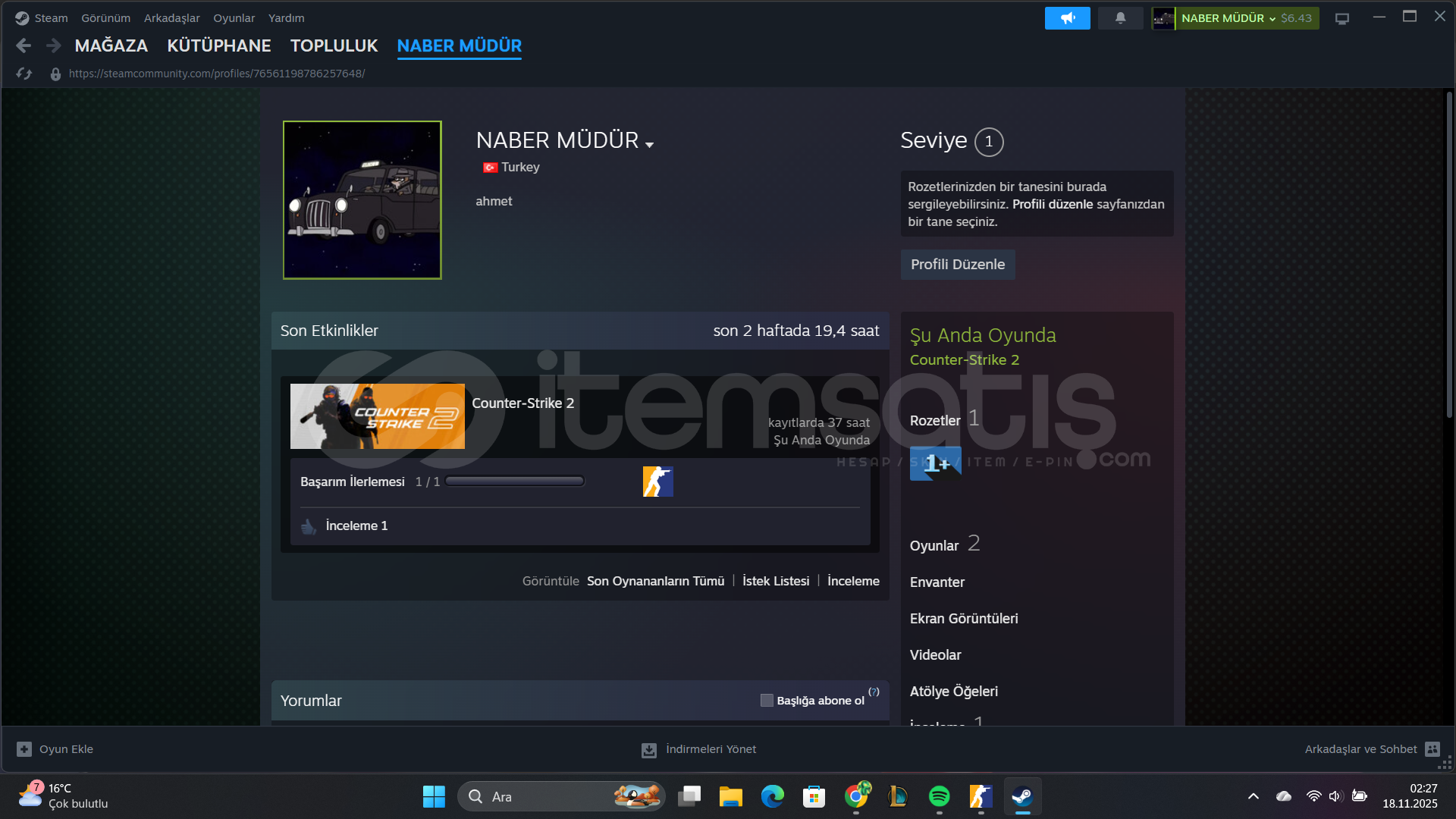 Hesapta cs2 15k elodadır mail devrimi yapılır hızlı teslimat içindede 6.43 dolar ve 3.50 dolarlık awp skini vardır haftalık droptan kalan