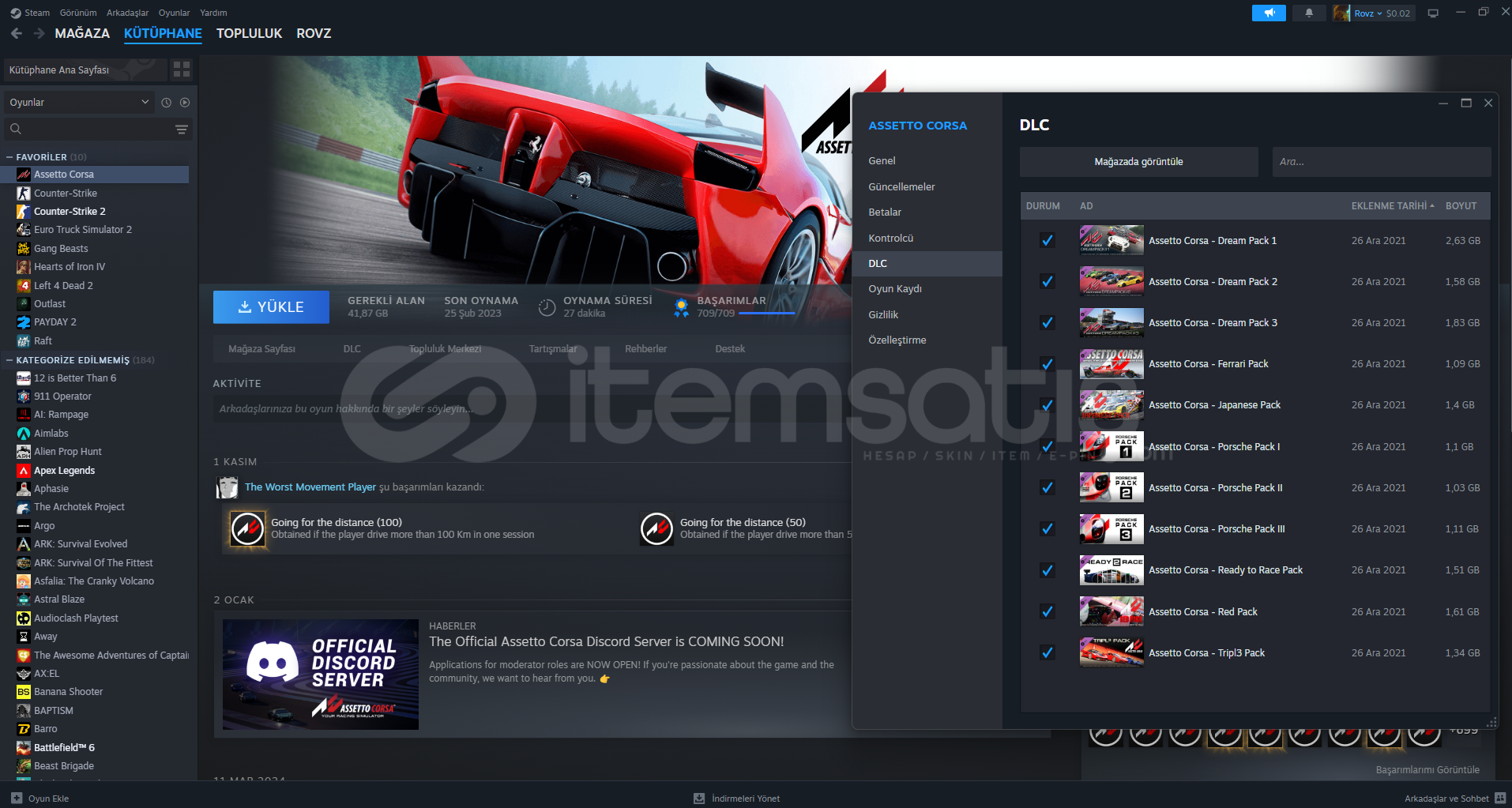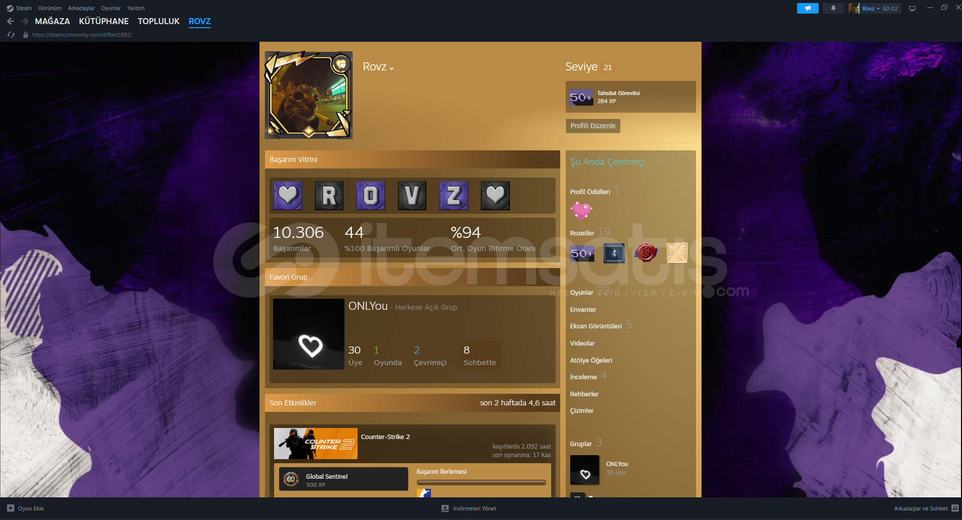 Hesapta 6683 tane Puan vardır Puan Dükkanında Harcana Bilir.Hesapta Vac ban yoktur. Mail ile birlikte verilecektir.Hesapta 64 oyun vardır.Counter Strike 2 (25 Kasımda 5 yıllık madalyası gelecek. Seçkinde 3. sezon 8 wini var Yoldaşta 300 win)Left 4 Dead 2Counter Strike 1.6Euro Truck Simulator 2Hearts of Iron IVThiefOutlastPayday2Assetto Corsa Ultimate Edition Full DlcRaftGang BeastsHesaptaki bazı oyunlar bunlardır.Hesapta 1 tane oyun p...