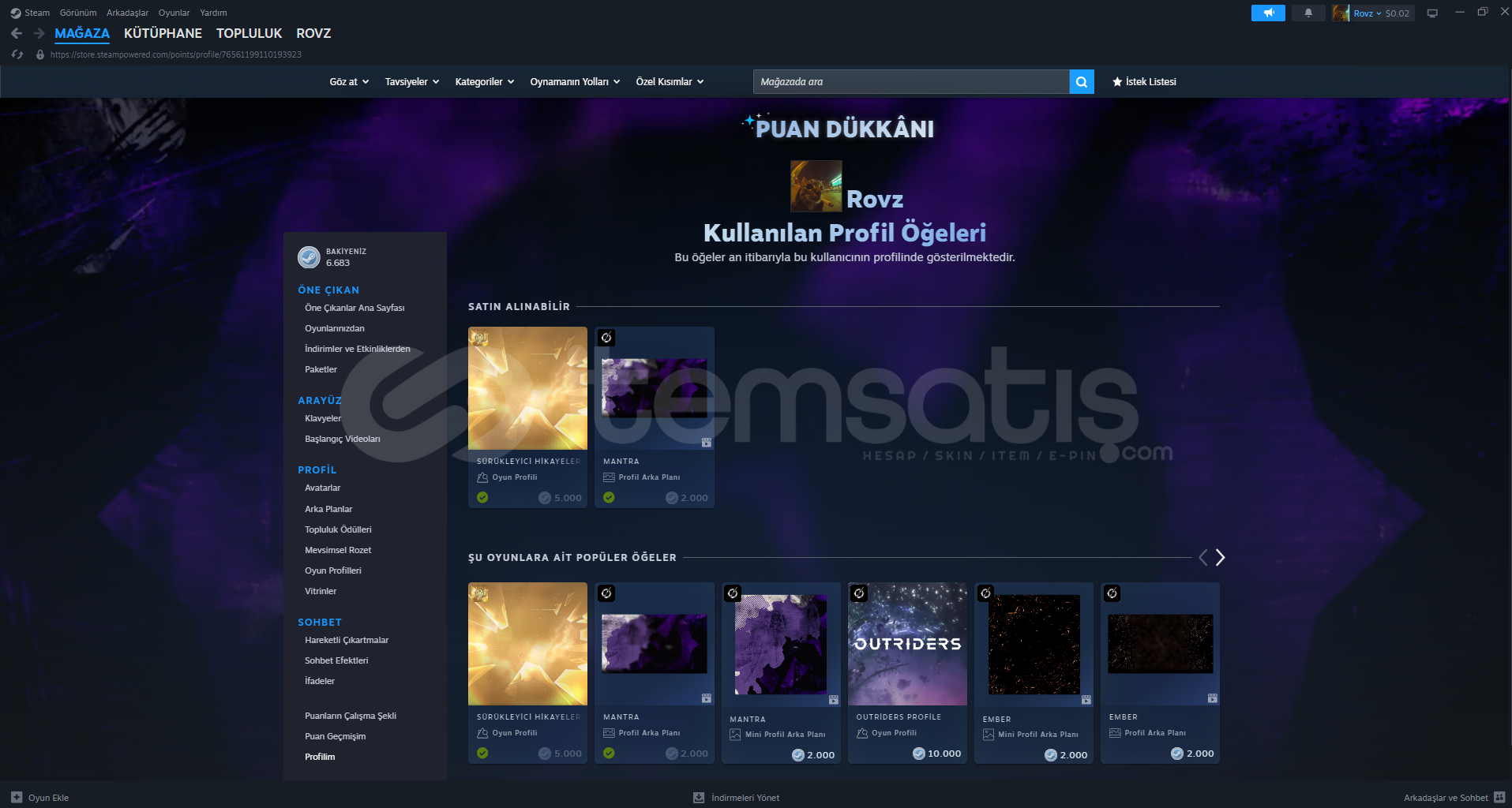 Hesapta 6683 tane Puan vardır Puan Dükkanında Harcana Bilir.