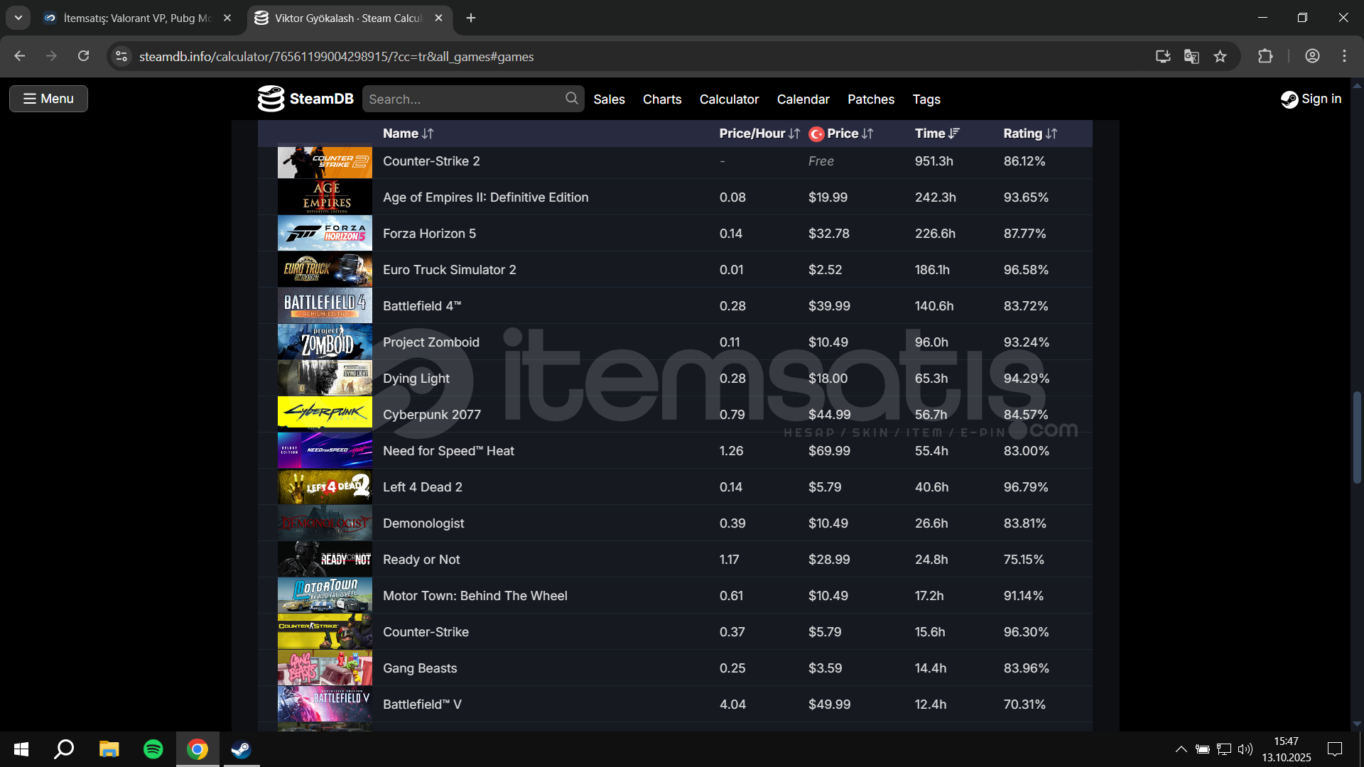 Hesabın ilk ve tek sahibi benim alana şimdiden hayırlı olsun. Sorularınız varsa ulaşabilirsiniz, fiyat oldukça makul BOL DLC'Lİ, banı yasaklaması vs. olmayan tertemiz hesaptır.HESAPTA BULUNAN DLC'LER:-AGE OF EMPİRES 2 DEFİNİTİVE EDİTİON: DAWN OF THE DUKESDYNASTİES OF İNDİA LORD OF THE WEST-BACK 4 BLOOD:ULTİMATE EDİTİON-BATTLEFİELD 1,4,5 HEPSİ PREMİUM EDİT&...