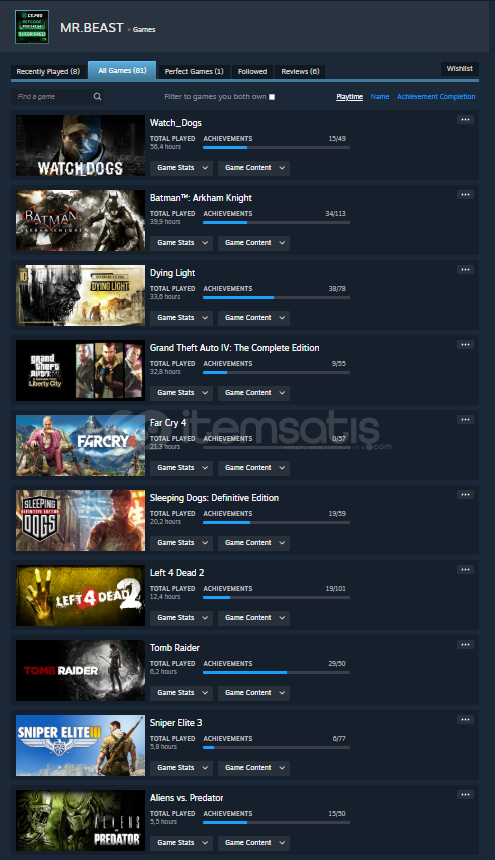 Değer Oyunlu Steam Hesabıdır İçinde Far Cry 4 Far Cry 6 (Bulunmaktadır Ubisoft Hesabı İçinde) Dying Light Batman™: Arkham KnightSniper Elite 3Aliens vs. PredatorLeft 4 Dead 2Grand Theft Auto IV: The Complete Edition(Girilmiyor)Hesabın 5 Dolar Kısıtlaması Bulunmamaktadır (Steam Pazar'da Satış Yapmaya Uygundur)Hesabın Ubisoft Ve Rockstar Hesabı Unutulmuştur Ama Ubisoft Hesabına Steam Ü...