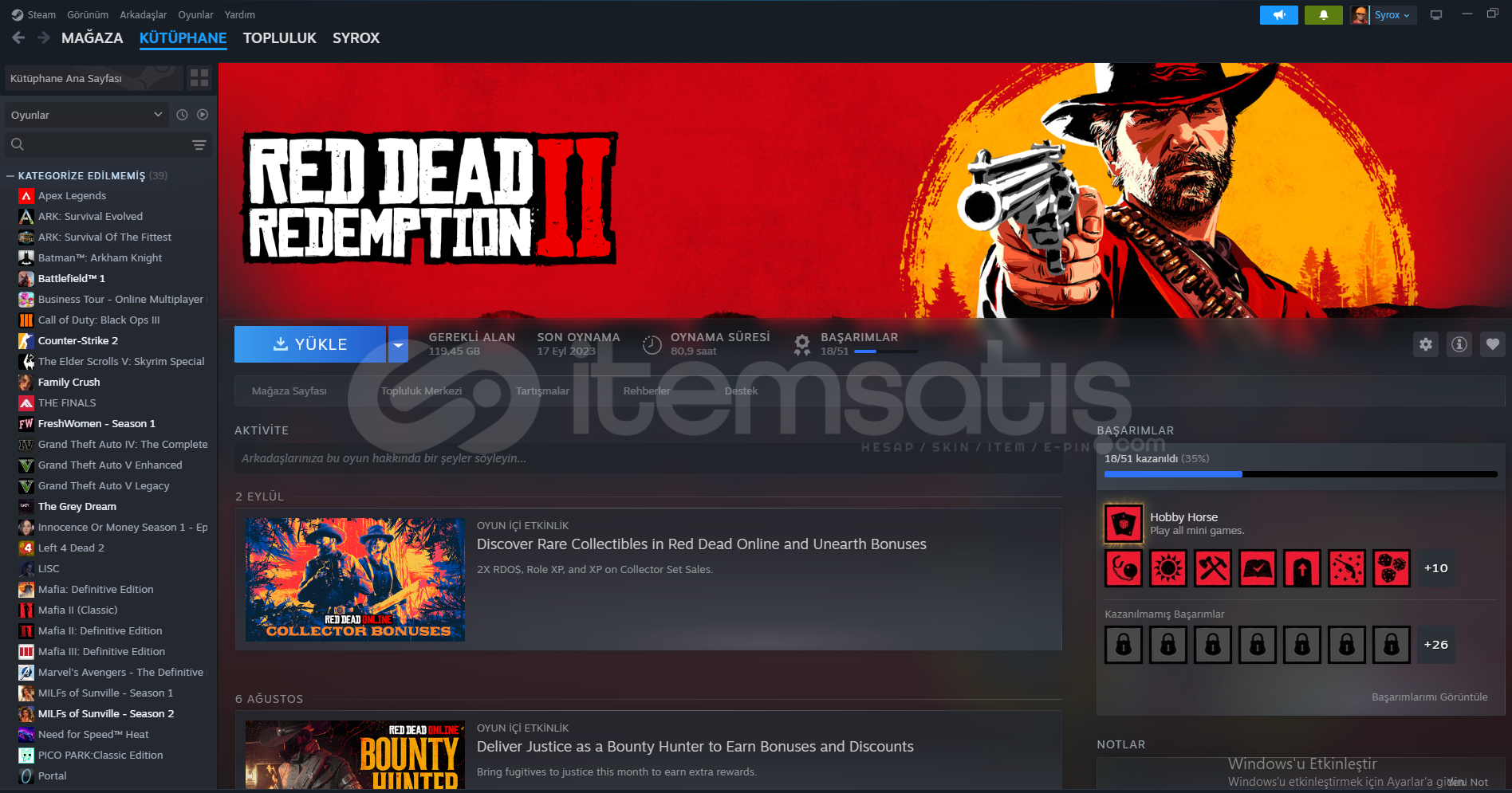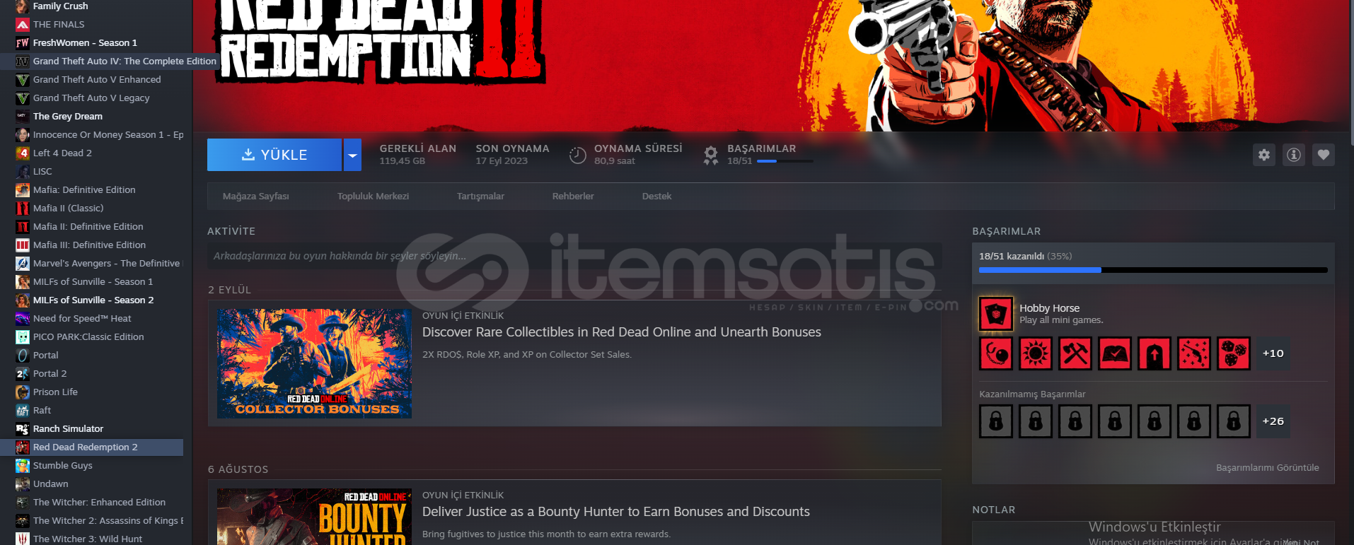 Merhaba hesabımı daha fazla kullanmak istemediğimden satmaya karar verdim. İçinde gerçekten kaliteli oyunlar içerir ve bazıları hiç oynanmamıştır. İlgilenen arkadaşlara indirim yaparım.