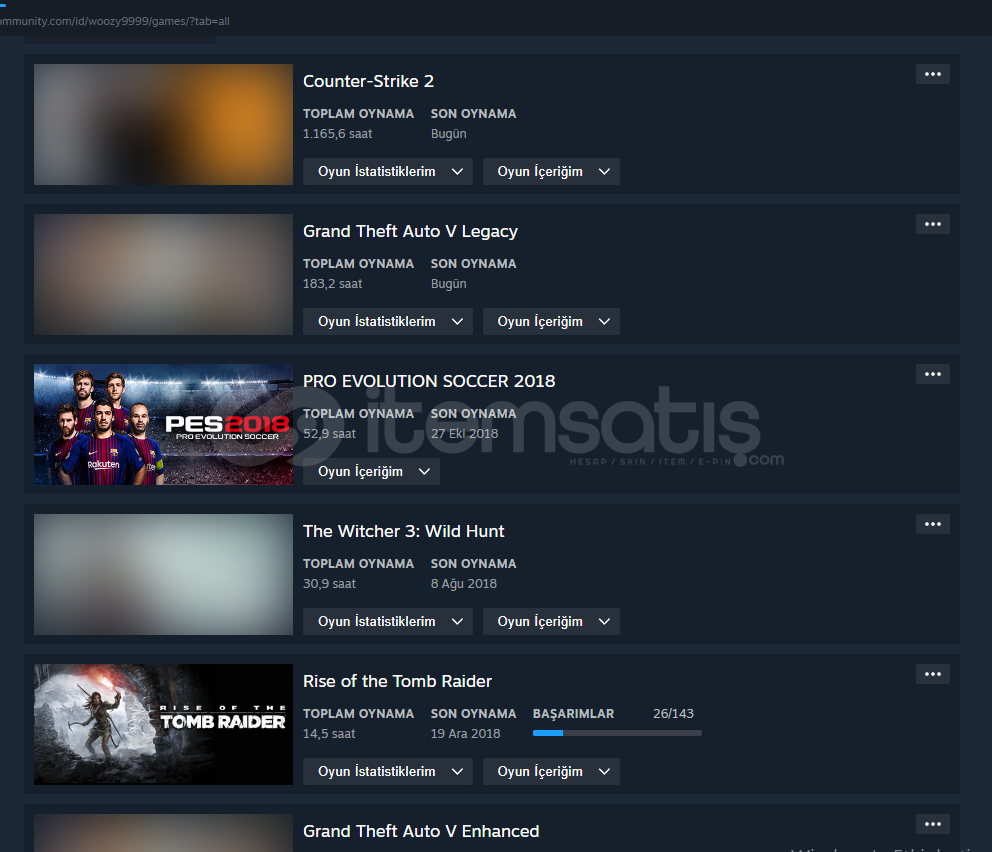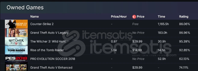 cs envanteri 500 dolar ediyor ve ayriyetten satabileceğeniz tam tamına 3 dolarlık şeyler bulunuyor gta 5 giriliyor ama enhanced olanı yüklemeniz lazım ve içinde ayriyetten pes18 var ve the witcher 3 vardır csde vac ban vardır oyunlar 60-70 dolar ediyor zaten baya ucuza koydum acil satılık
