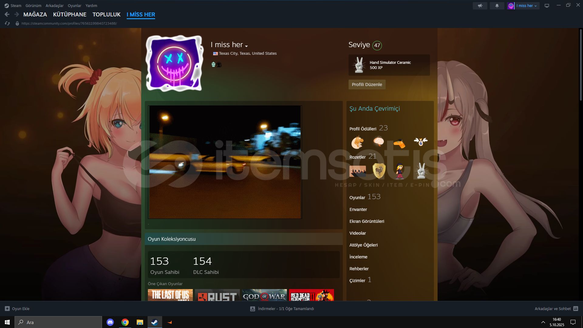 1 senelik emek steam hesabım ilanda araba alıcam için satılıktır hesap dop doludur oyun olarak 150 küsür oyun vardır fakat yarısından fazla AAA kalitede hesap şahsıma ait oluphiç bir ban veya vac ban söz konusu dahi değildir çoğu oyunda detaylı ve para yatırılmış değerli nadir bir steam hesabıdır rockstar games e postası vs değişicektir tüm s...