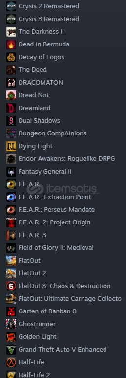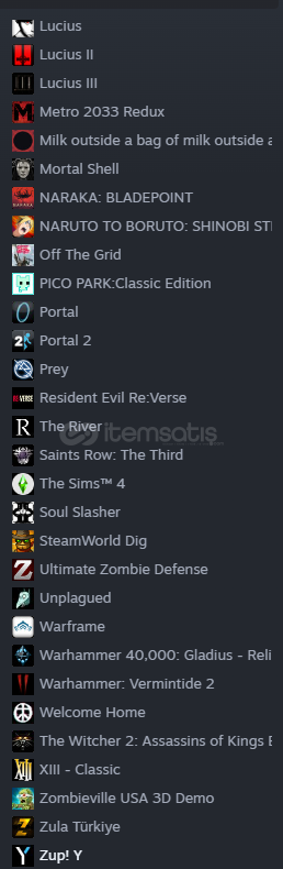 6 yıldır kendi adıma açıp özellikle hikayeli oyunlar alıp oynadığım bir steam hesabıdır.Oyunlar son kalite ki görselde göreceksiniz.Cs seçkin varhiçbir oyunda ban vb. yokturİlk mail bende ve alıcıya mail değişimi yapılacaktır veyahut maille birlikte isterse verebilirim.Herhangi bi yere dm çağıranlar lütfen işine baksın site dışı b...