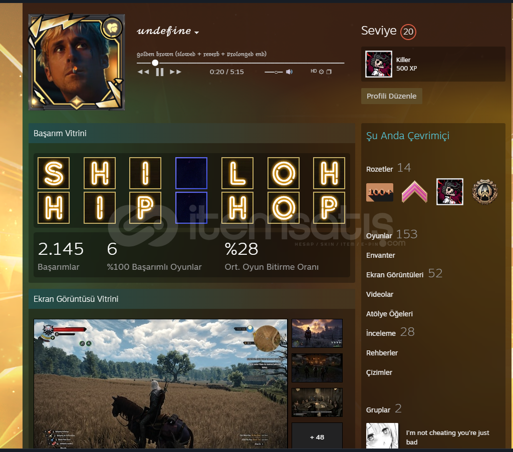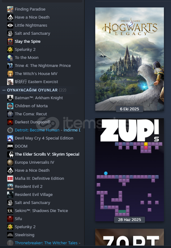 6 yıldır kendi adıma açıp özellikle hikayeli oyunlar alıp oynadığım bir steam hesabıdır.