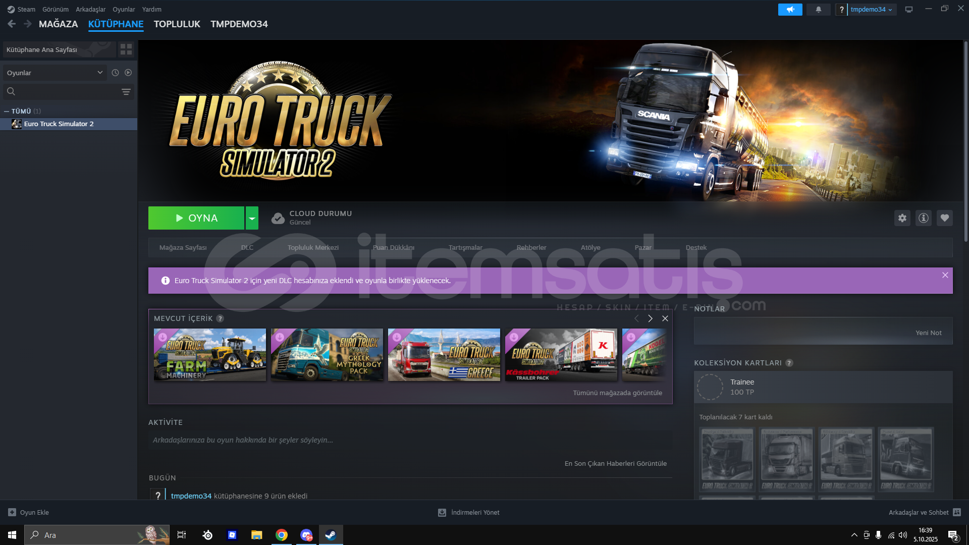 Hesap 0 DIR HİÇ ETS OYNANMAMIŞ TEK OYUN ETS2 DİR 2 SAAT KASIP TMP HESABI AÇIP RAHATLIKLA OYNAYABİLİRSİNİZ MAİL ŞİFRE ÜSTÜNÜZE ÇEKEBİLİRSİNİZ HESAPLAR VE OYUNLAR İSTER ONLİNE/İSTER OFFLINE OYNAYABİLİRSİNİZ